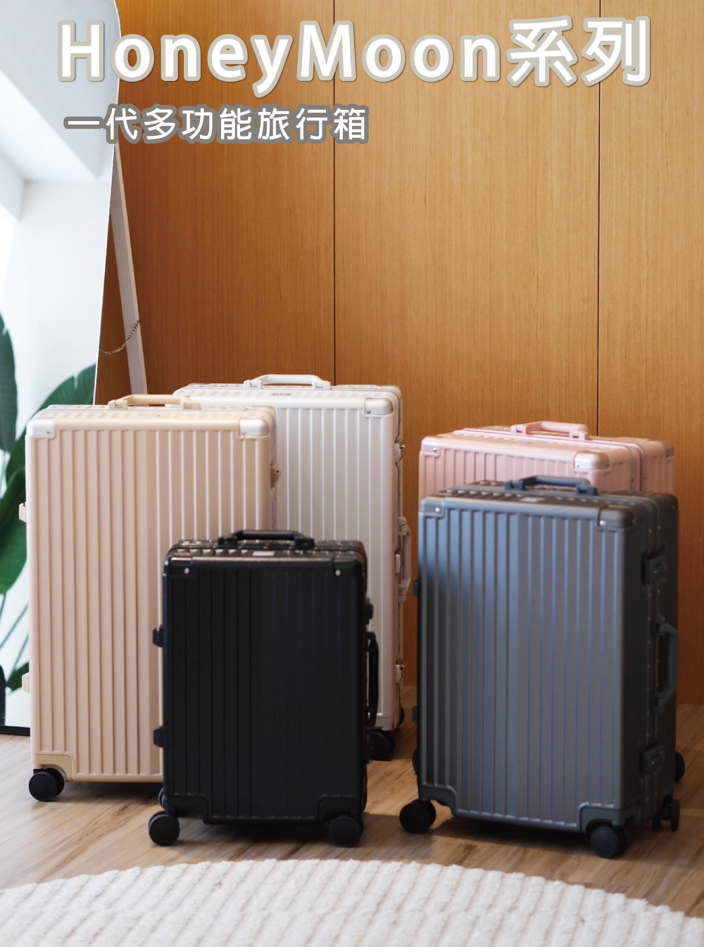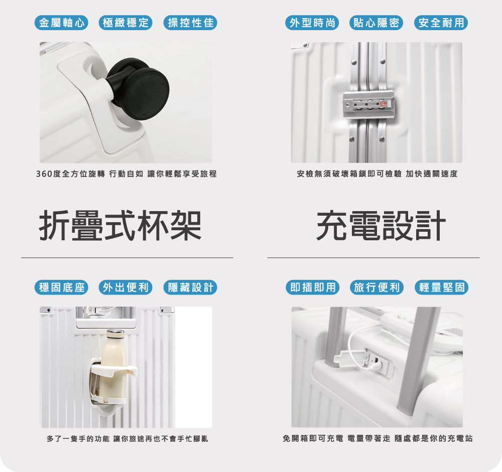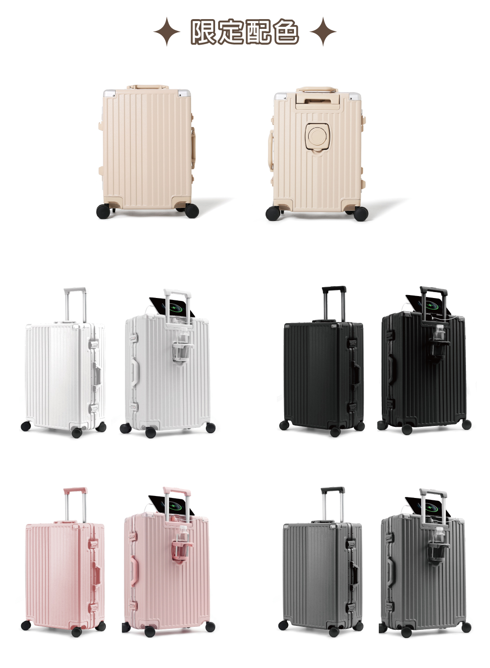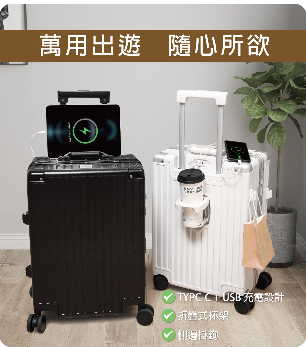 【Honeymoon】24吋多功能杯架USB充電行李箱(旅行箱/鋁框行李箱/USB充電/杯架)