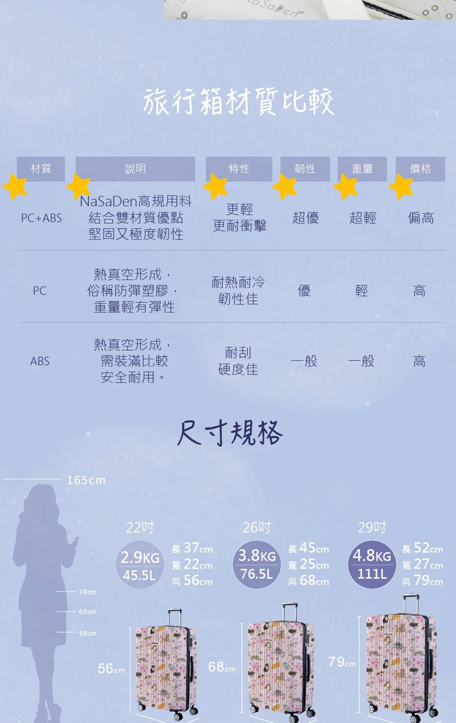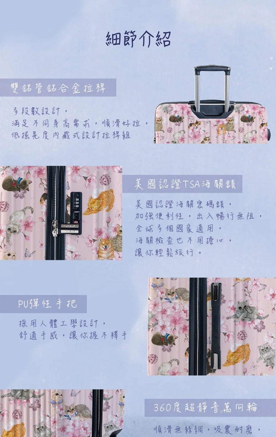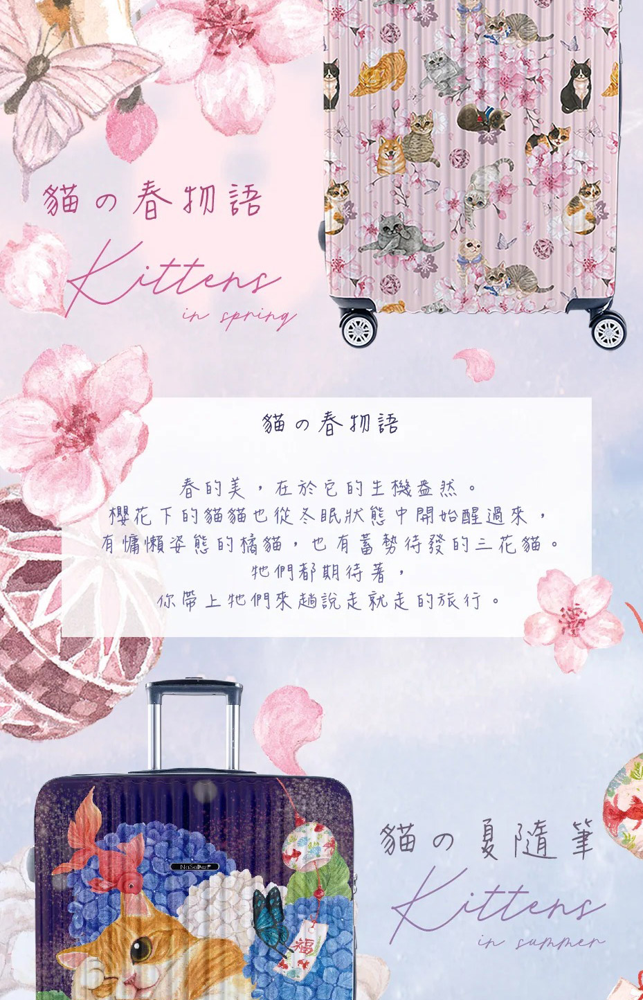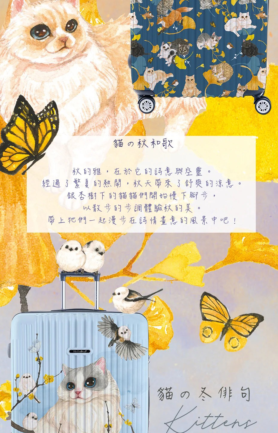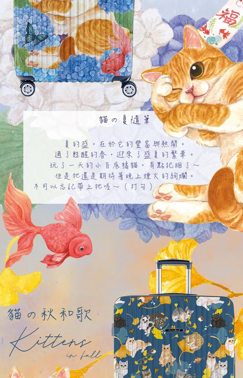 【NaSaDen 納莎登】29吋 二代新無憂 貓咪的四季系列行李箱 貓四季春/夏/秋(英格藍貓聯名款 拉鍊行李箱)