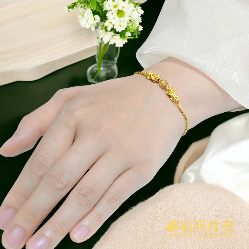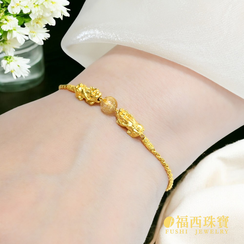 【福西珠寶】雙11黃金手鍊 開運聚財貔貅黃金手鏈 雙面可戴(金重0.88錢正負0.03錢)