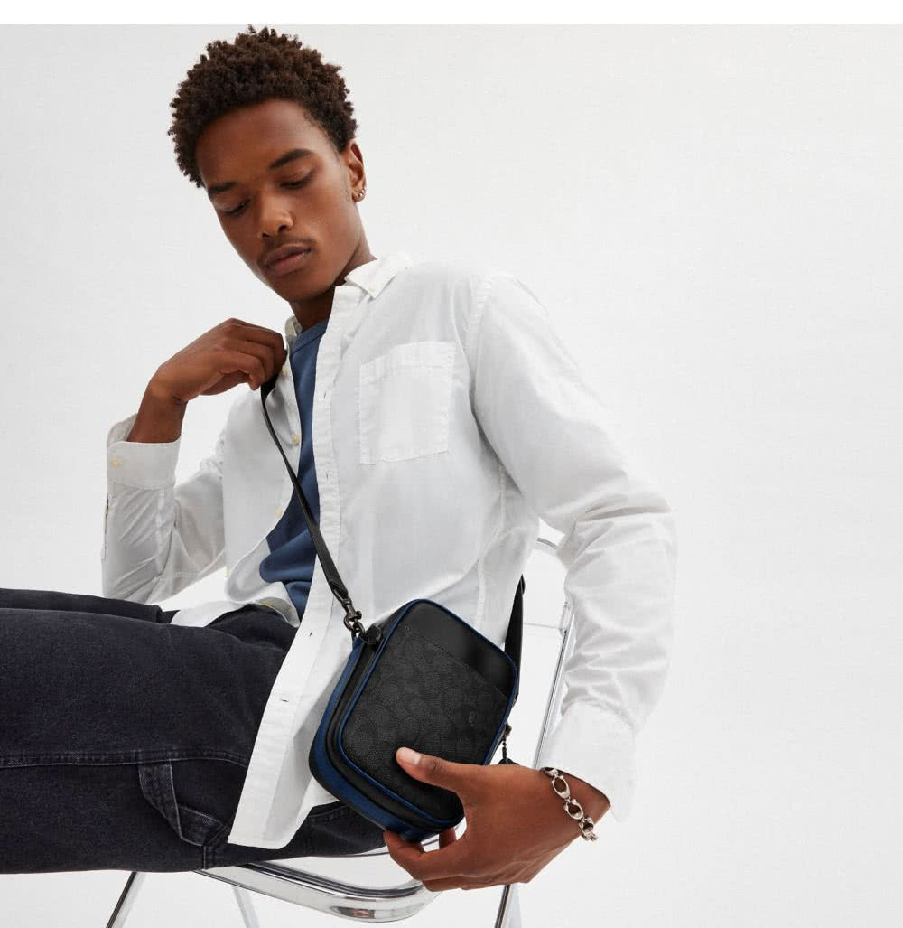 【COACH】蔻馳官方直營 HITCH撞色經典Logo斜背手袋 斜背包 側背包 斜挎包-混合黑色(CW462)