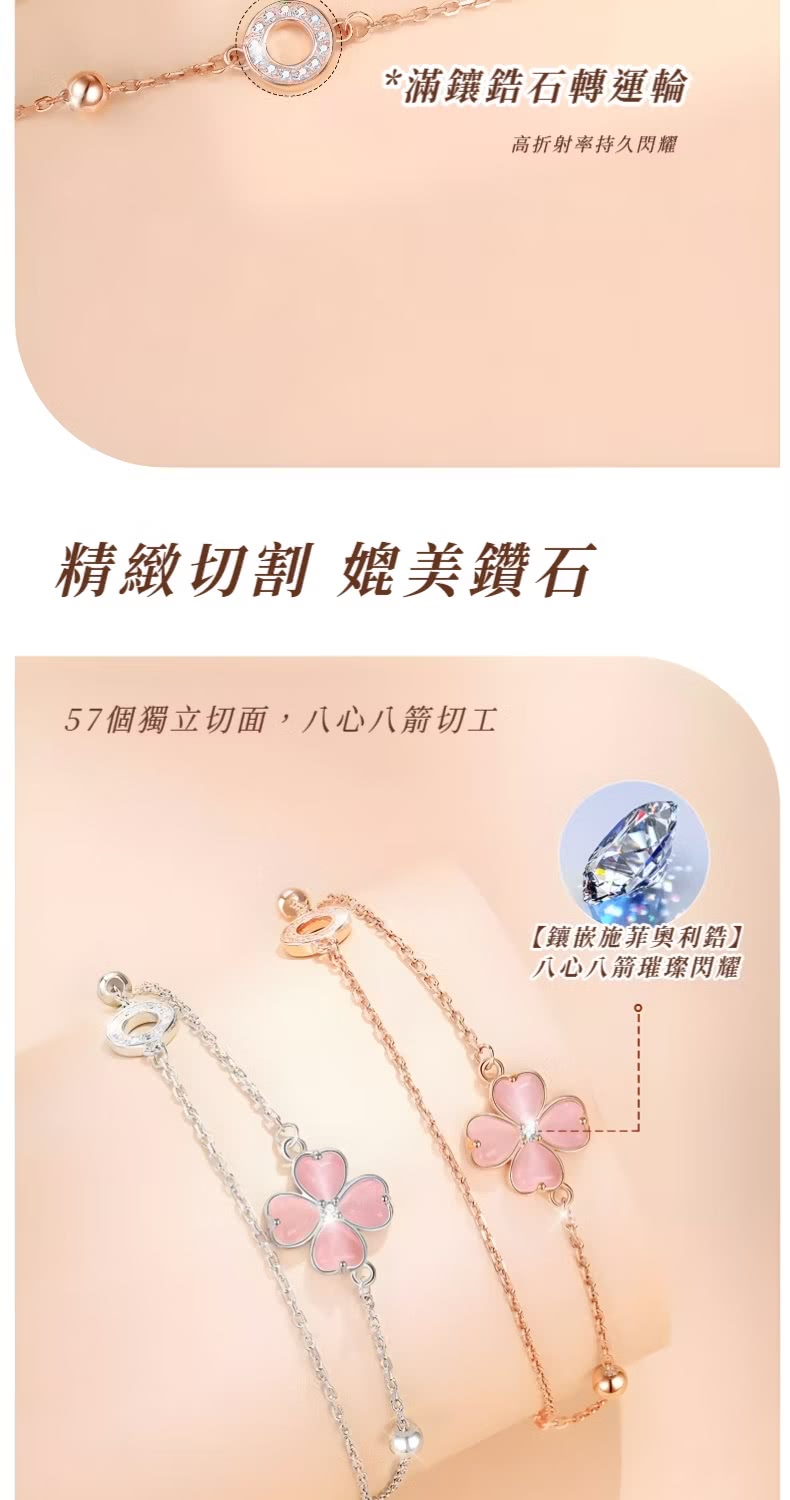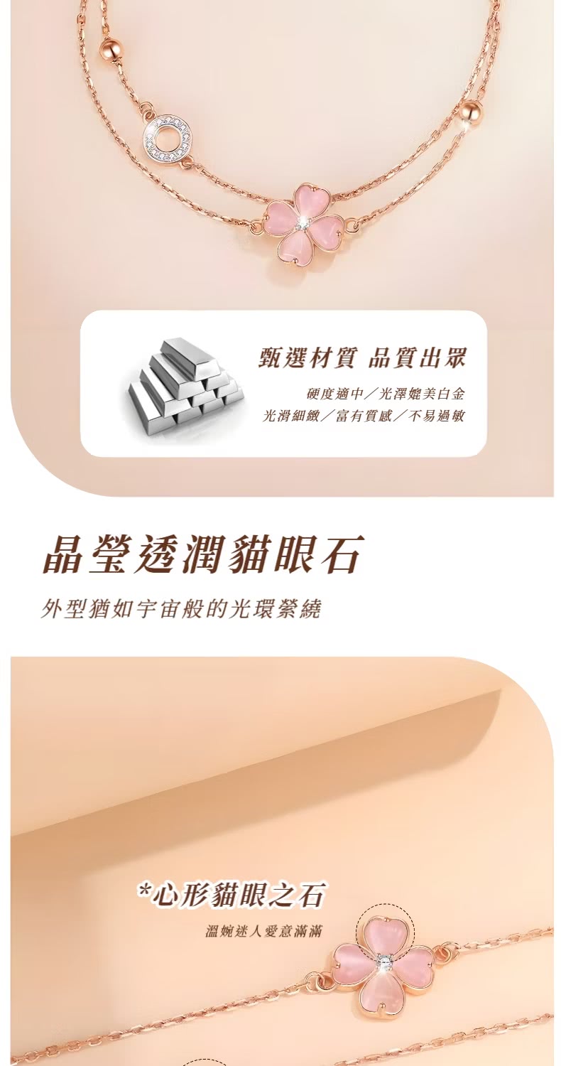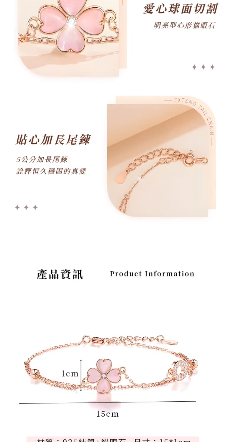 【溫柔小品】芳心S925純銀心型球面貓眼石手鍊(四葉幸運草 愛情 轉輪 祈願飾品 手鏈 手環 開運飾品)