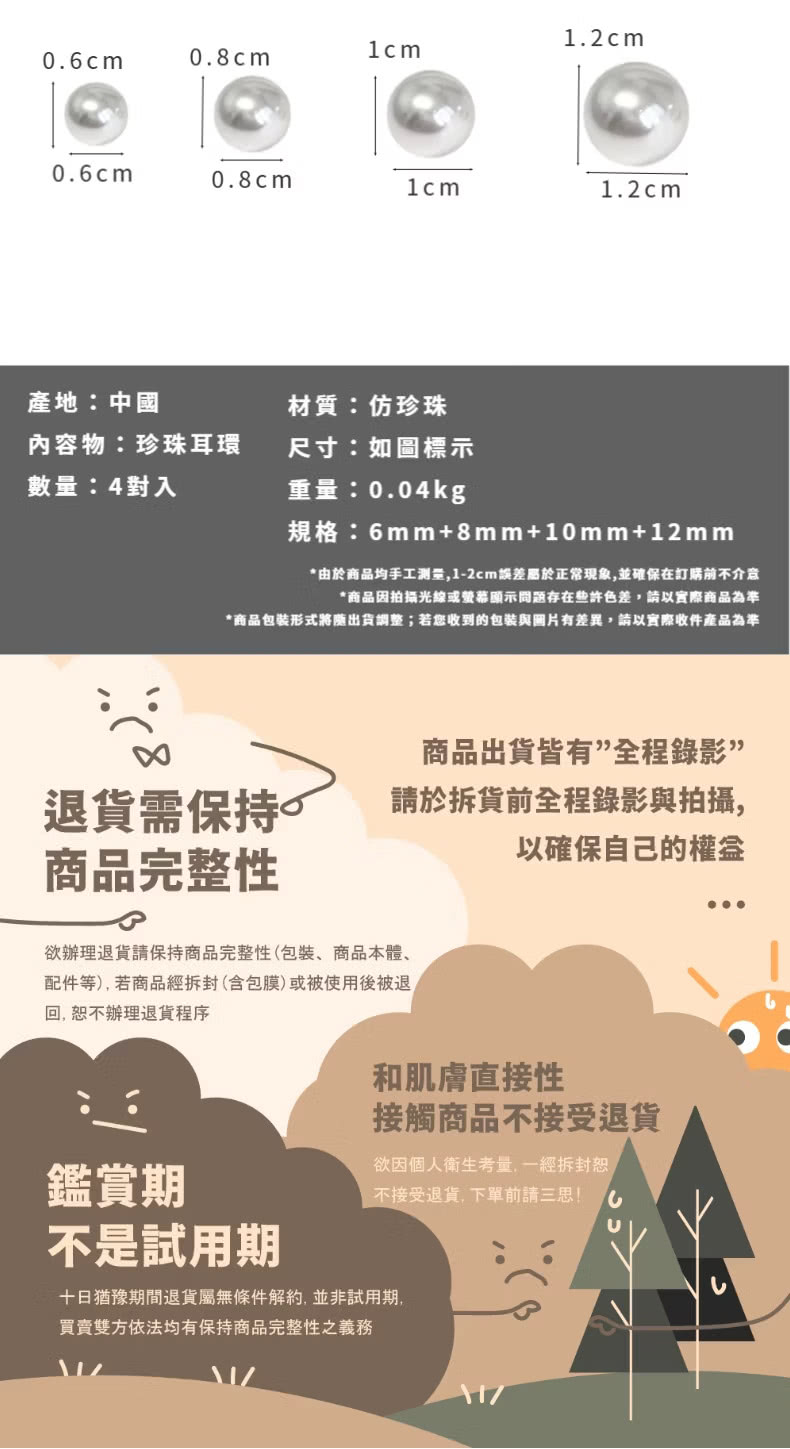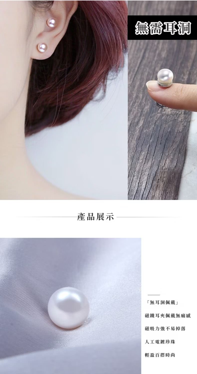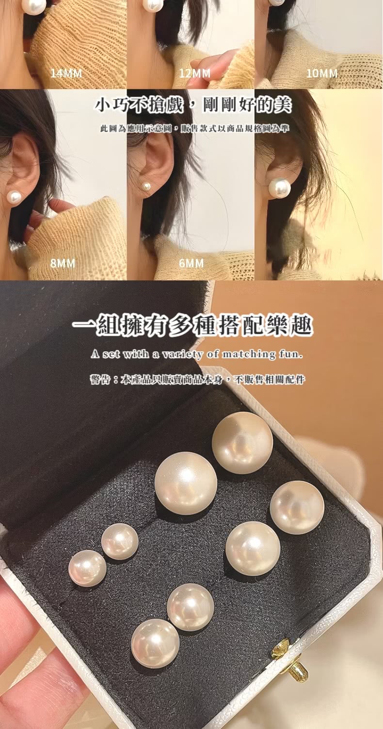 【簡約百搭】法式典雅氣質磁吸珍珠耳環-4對入(多尺寸入 穩固磁鐵式 耳骨 無耳洞 耳夾式耳環 禮服 日常)