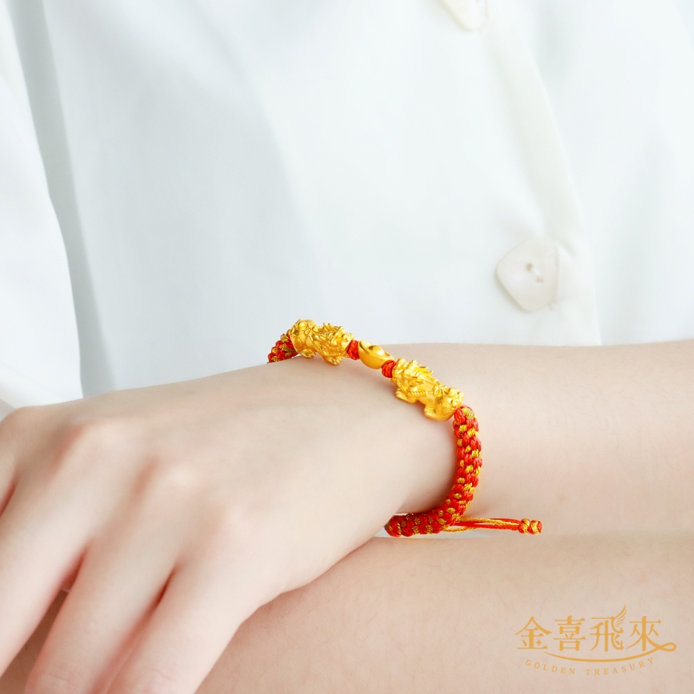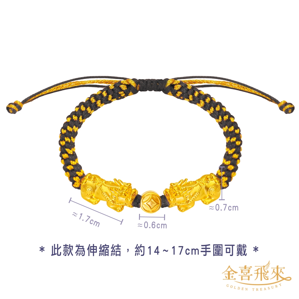 【金喜飛來】黃金手鍊招財貔貅元寶古錢手繩多選(0.29錢±0.03)