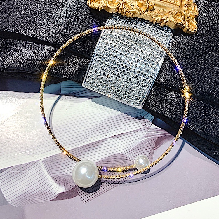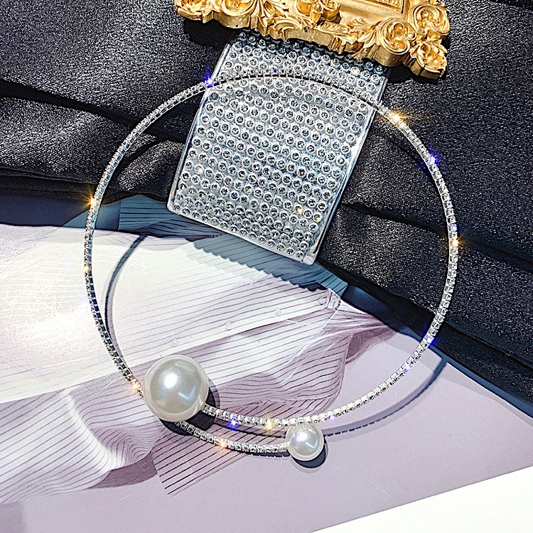 【89 zone】韓版古典珍珠開口頸帶 飾品 鎖骨鏈 毛衣鏈 短款項鏈 項鏈 1 入(銀/金)