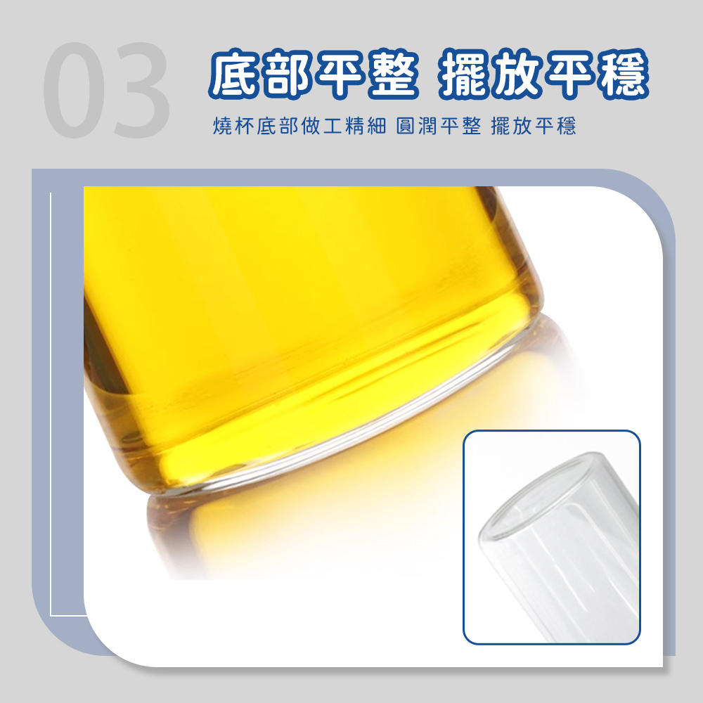 - 高硼硅玻璃,低膨脹率,耐高溫及酸鹼。- 內置磨砂蓋,均勻細膩。- 頂部為方形手柄,手持穩固便於拿取。- 底部平整,擺放穩固。