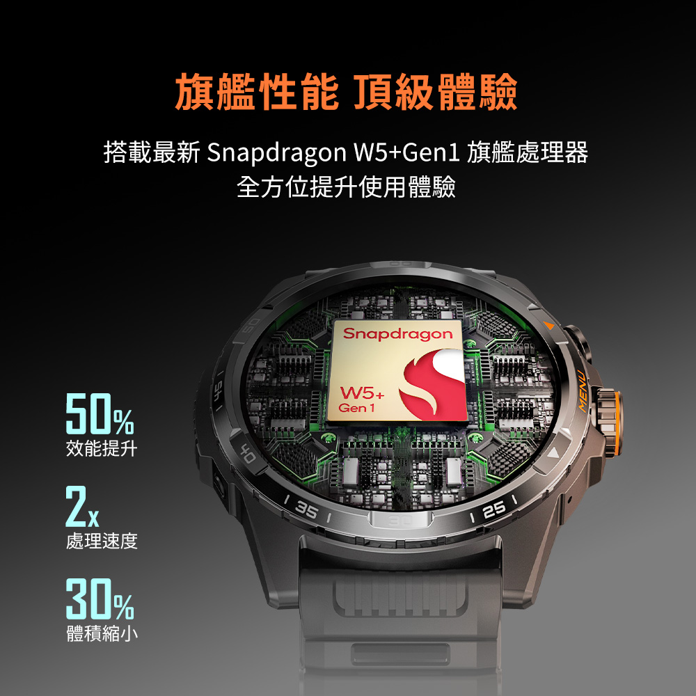 搭載最新Snapdragon W5+Gen1處理器,相較前代旗艦4100系列,運算能力提升50%、運作速度快上2倍、體積縮小30%,全方位提升使用體驗