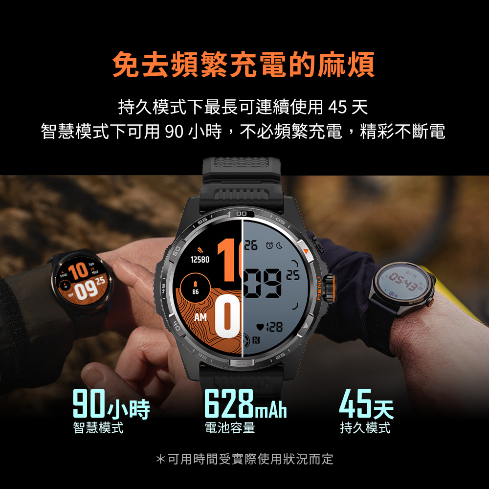內建611mAh電池容量,持久模式下最長可連續使用45天,智慧模式下可用90小時,不必頻繁充電,精彩不斷電