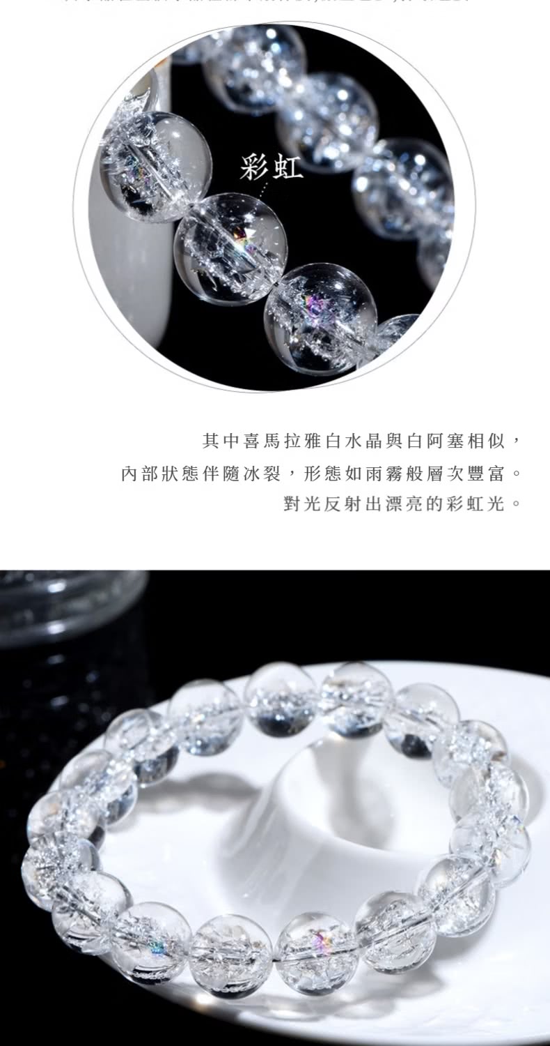 【晶之王】天然白水晶喜馬拉雅圓珠手鏈-10mm(能量 彩虹 手串 手珠 開運鍊 禮物 碎冰 拍照道具 飾品 氣質)