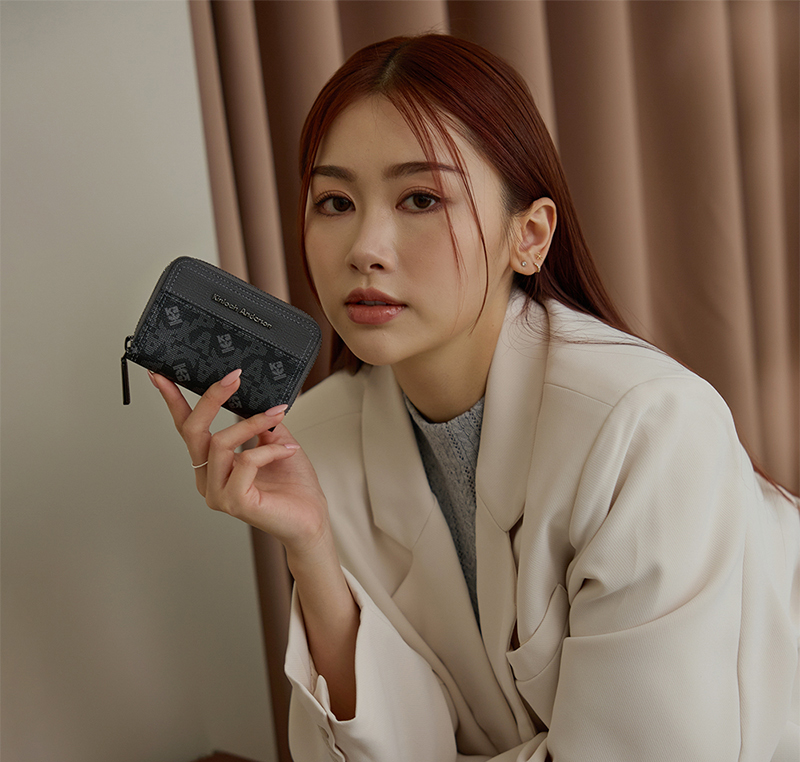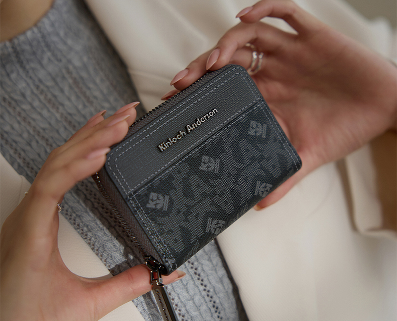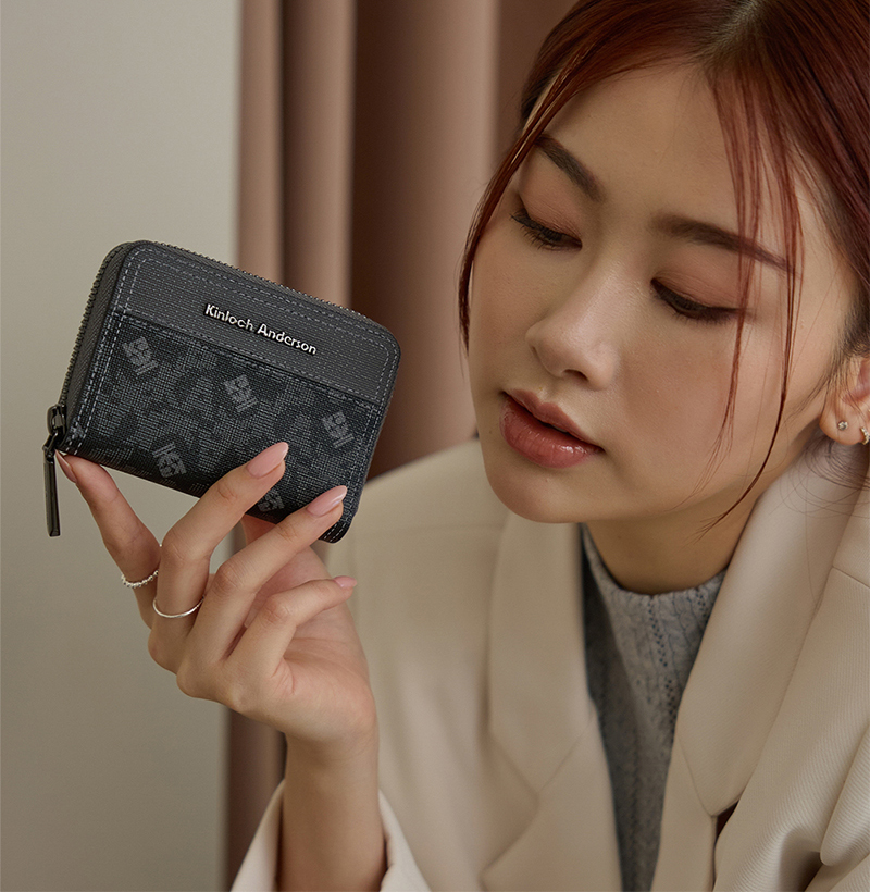 【金安德森】Genevieve 經典老花拉鍊零錢包(碳黑)