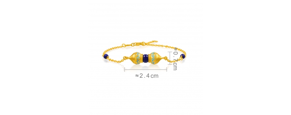以象徵生命力的忍冬紋為靈感,運用硬金工藝及彩繪塗色,呈現色彩奪目的民族美學。青金石點綴,傳遞吉祥與平安的美好祝願。
