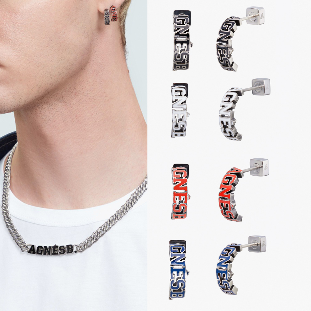 【agnes b.】男款 白鋼字母耳環單耳(多款)