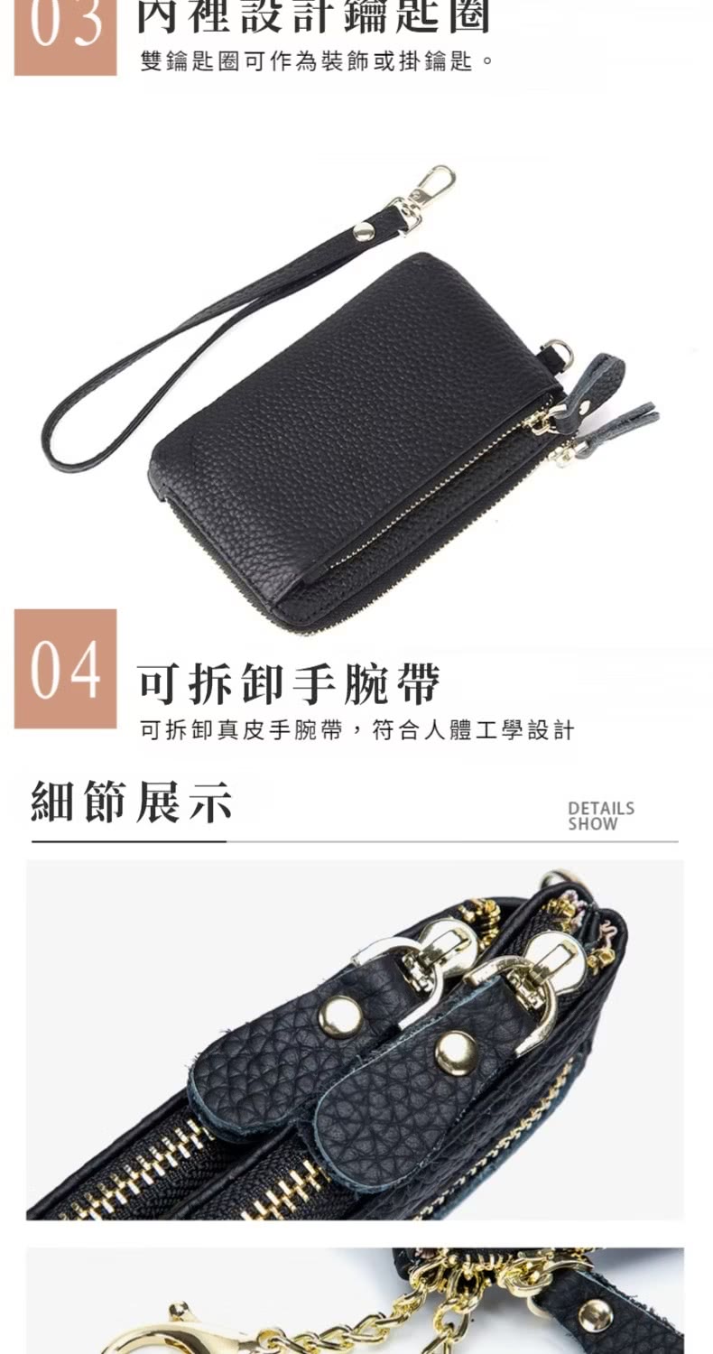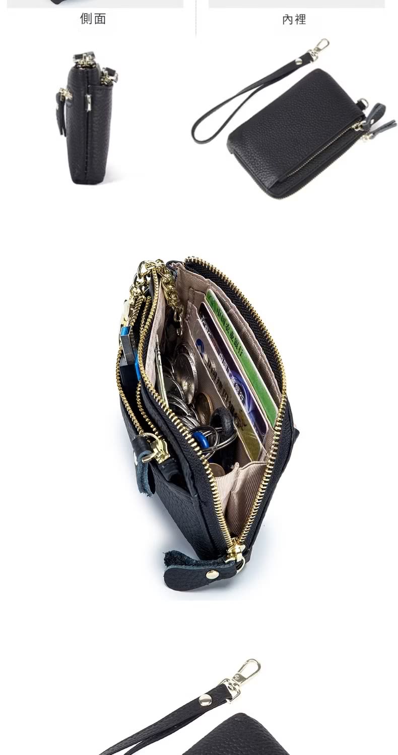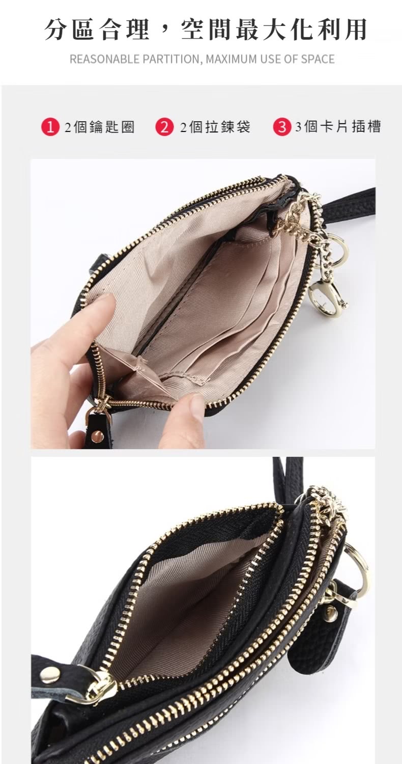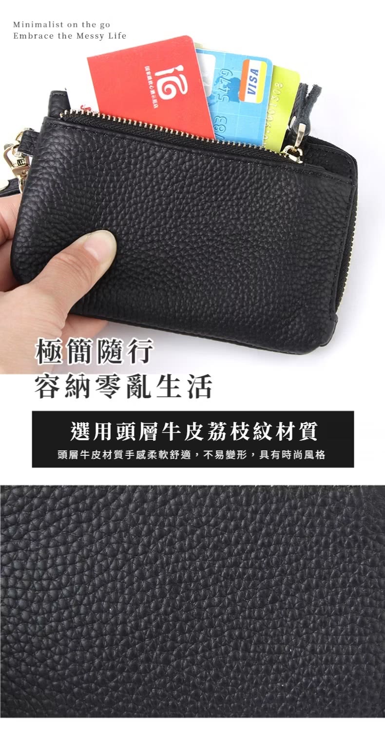 【荔紋時尚】雙11 真皮雙拉鍊隨身手拿錢包(真皮包包 零錢包 分格 手腕包 鑰匙圈 逛街 外出 旅行