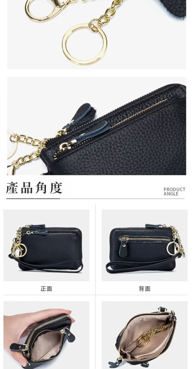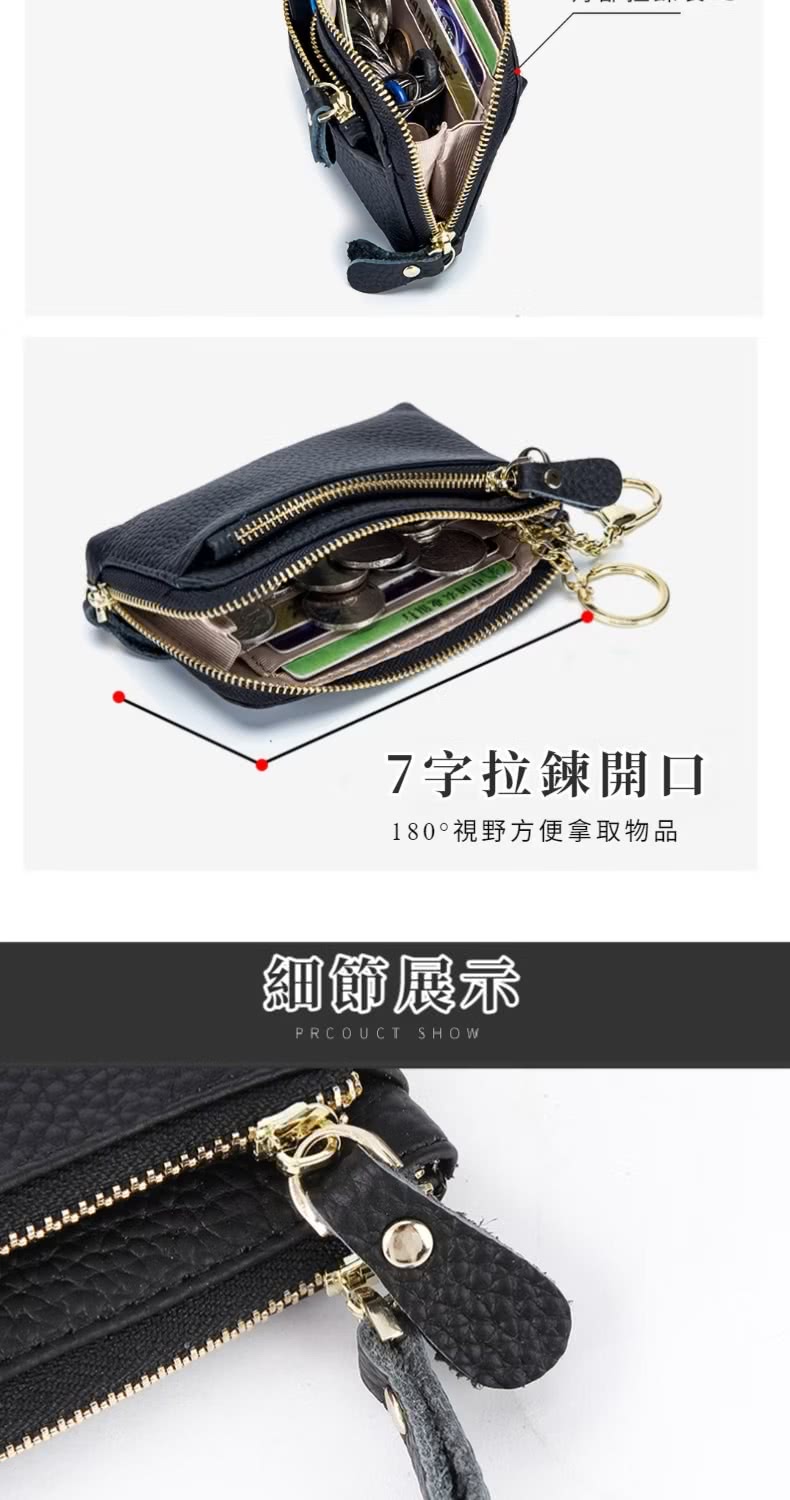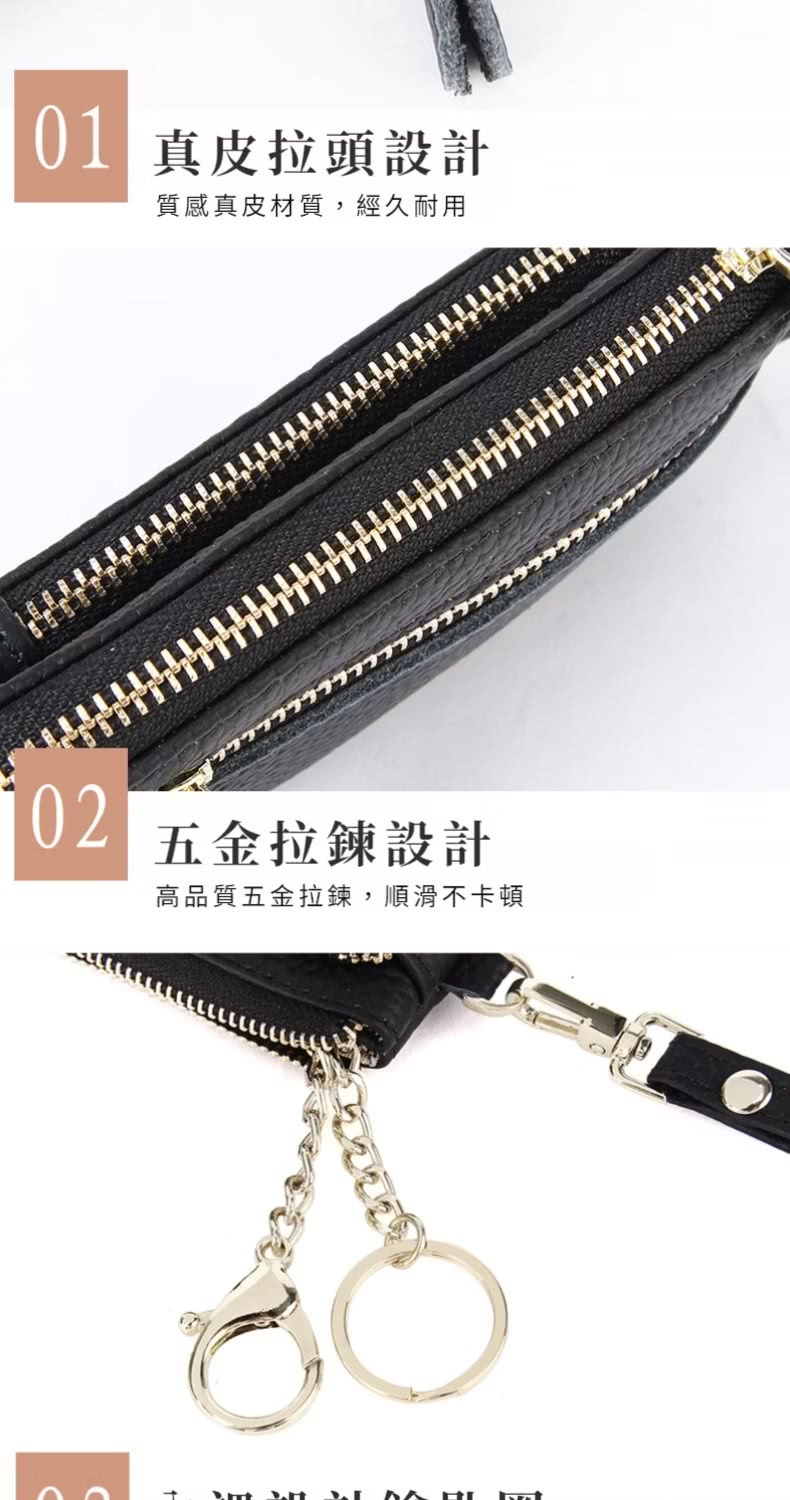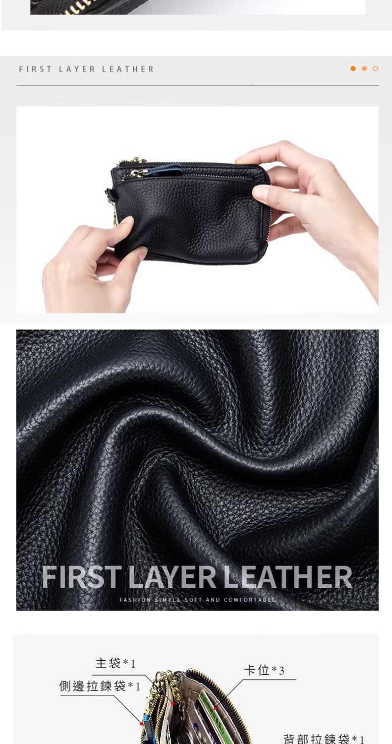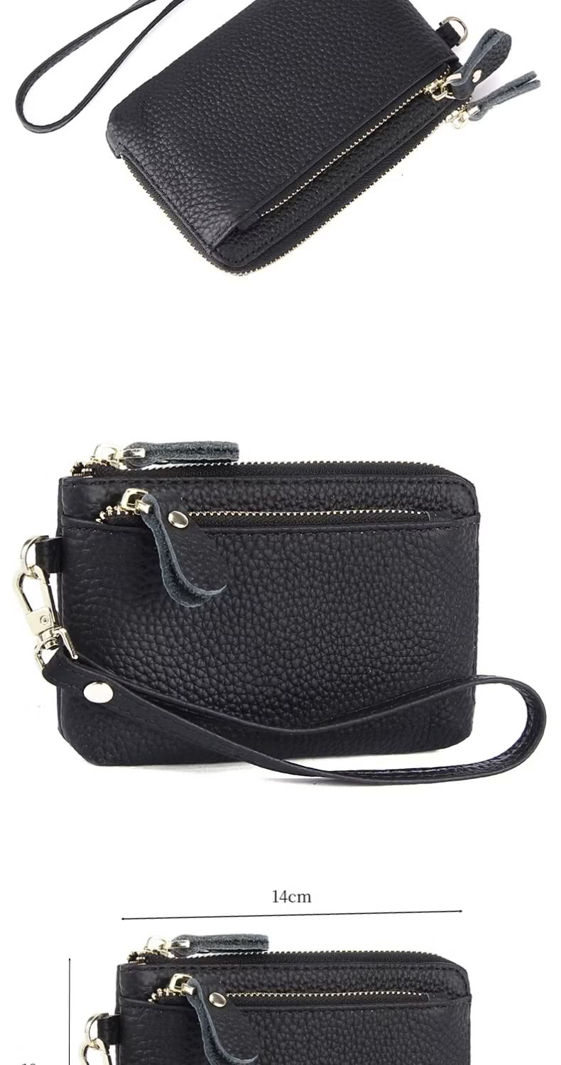 【荔紋時尚】雙11 真皮雙拉鍊隨身手拿錢包(真皮包包 零錢包 分格 手腕包 鑰匙圈 逛街 外出 旅行