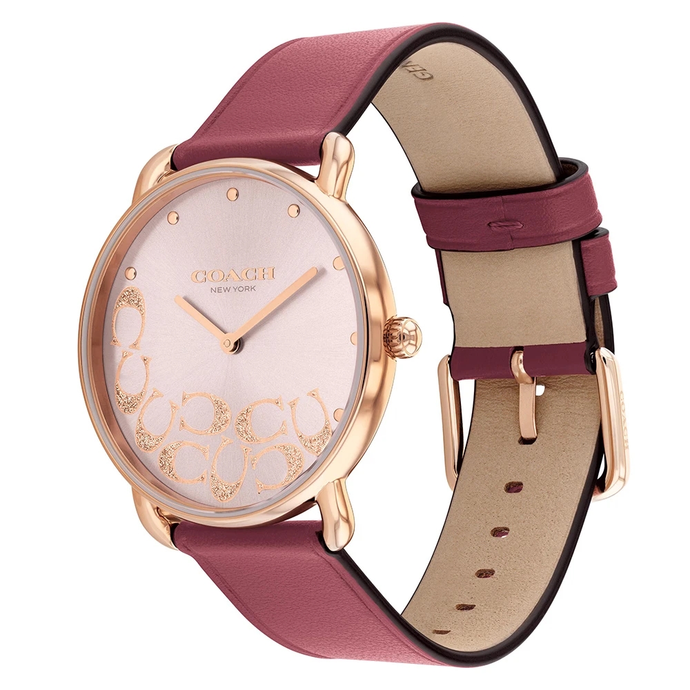 【COACH】香檳粉色面盤皮帶 手錶 女錶 36mm(14504338)
