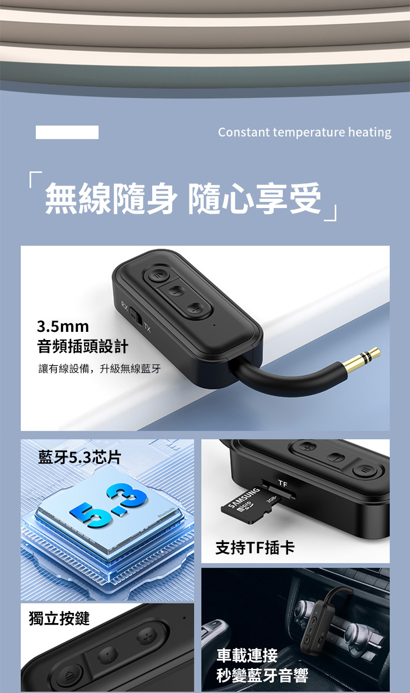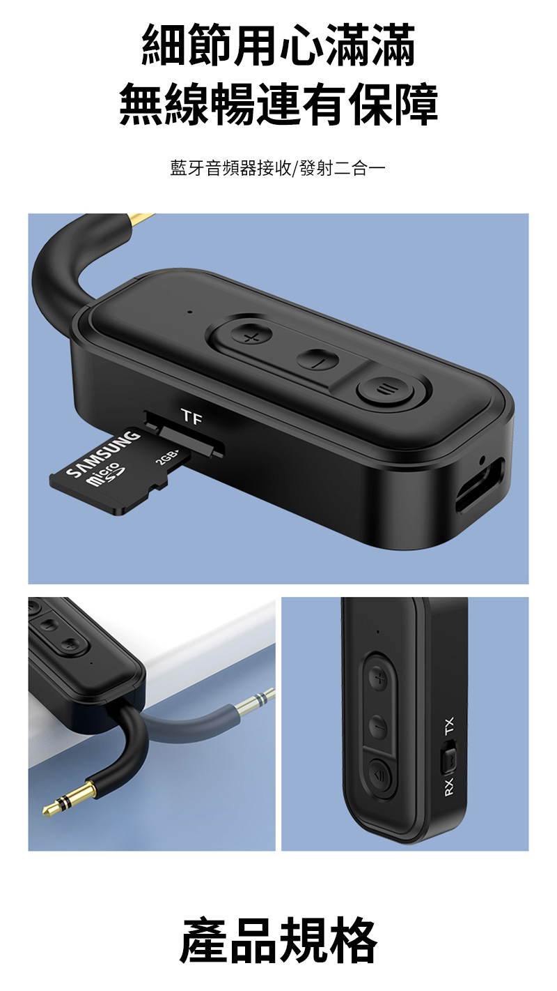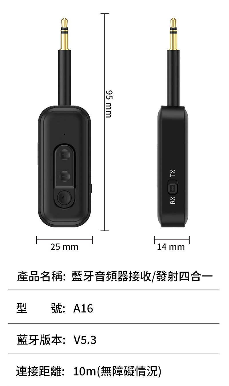 【Nil】雙11 A16 藍牙5.3無線音頻接收器 AUX車載音響適配器 TF插卡耳機播放器 電視電腦手機平板發射器