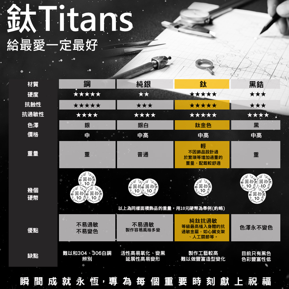 不只是一條項鍊或手環,更是一種健康與時尚兼備的生活態度。鈦的自然親膚特性,讓你佩戴一整天都無負擔,讓風格與舒適同行。
