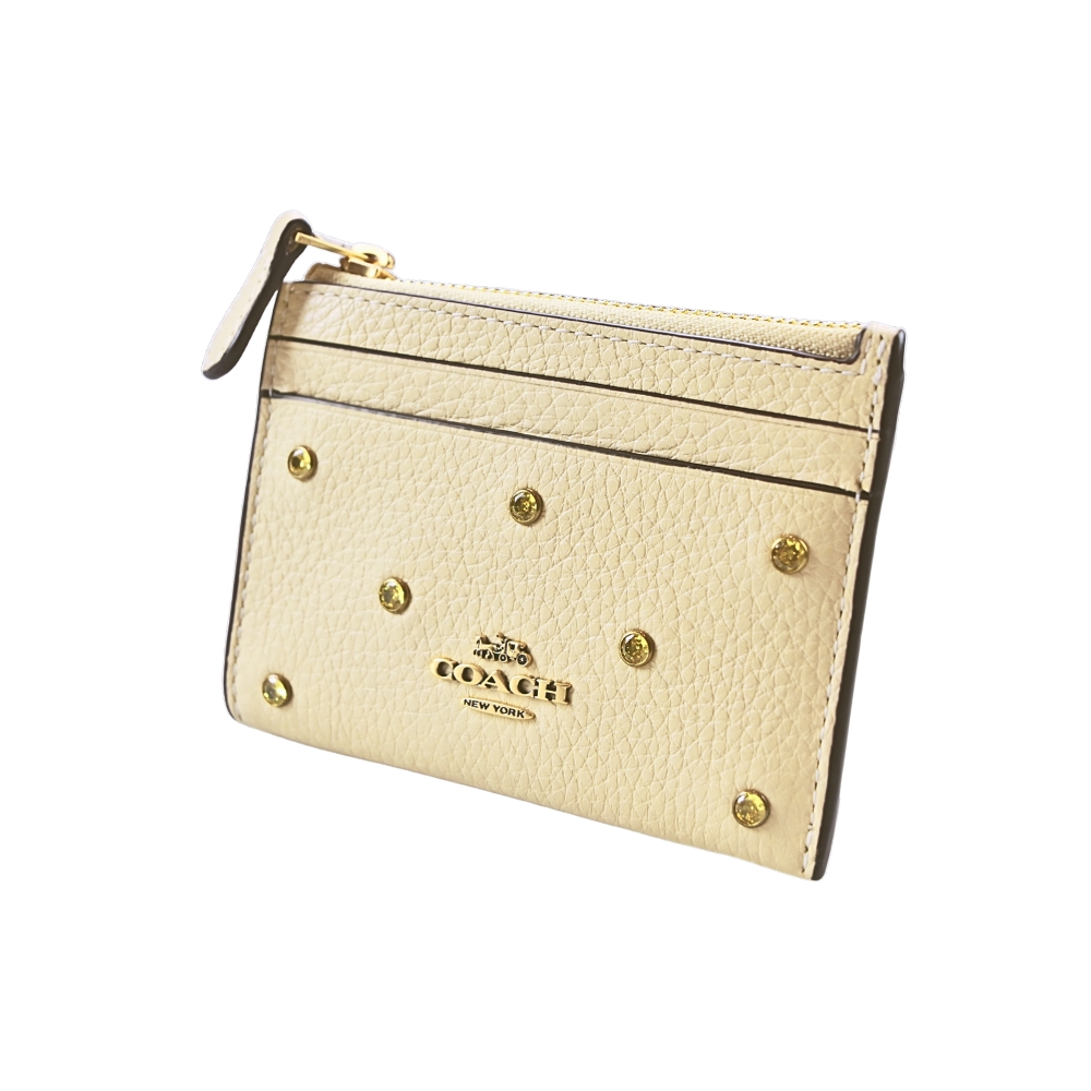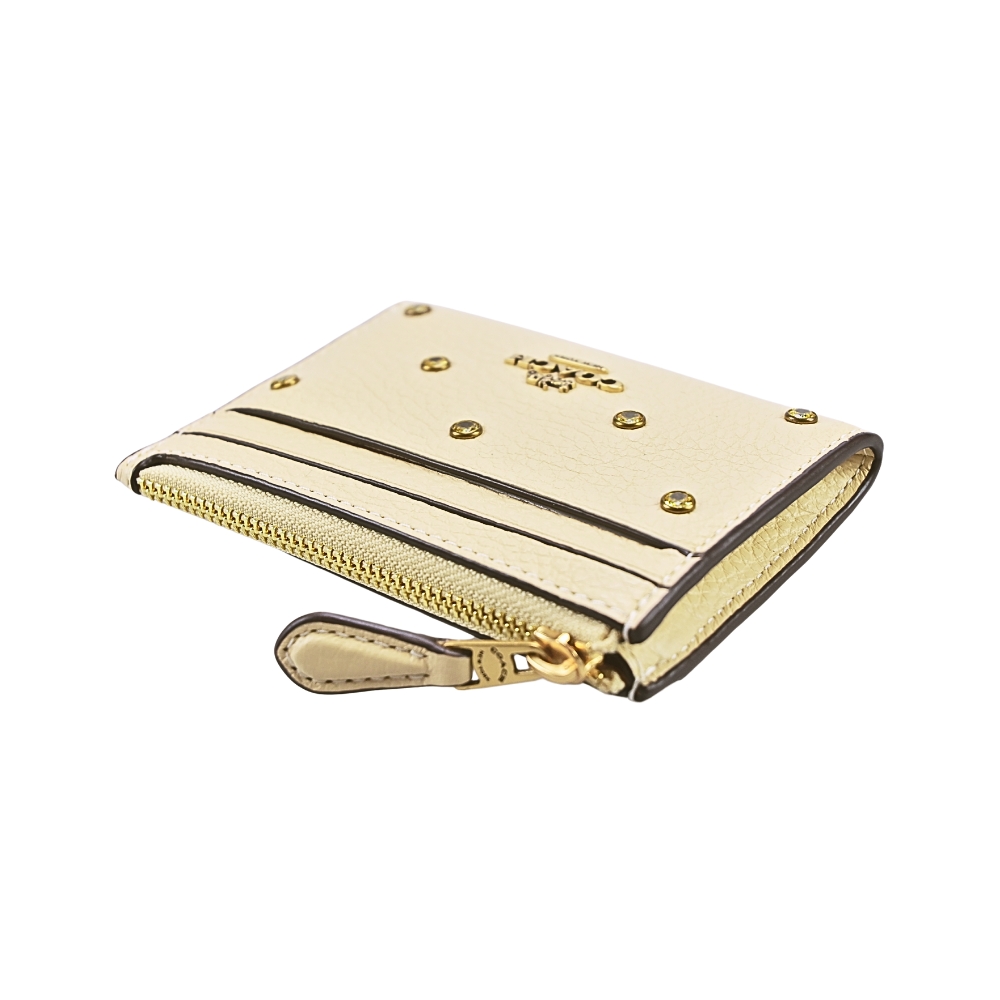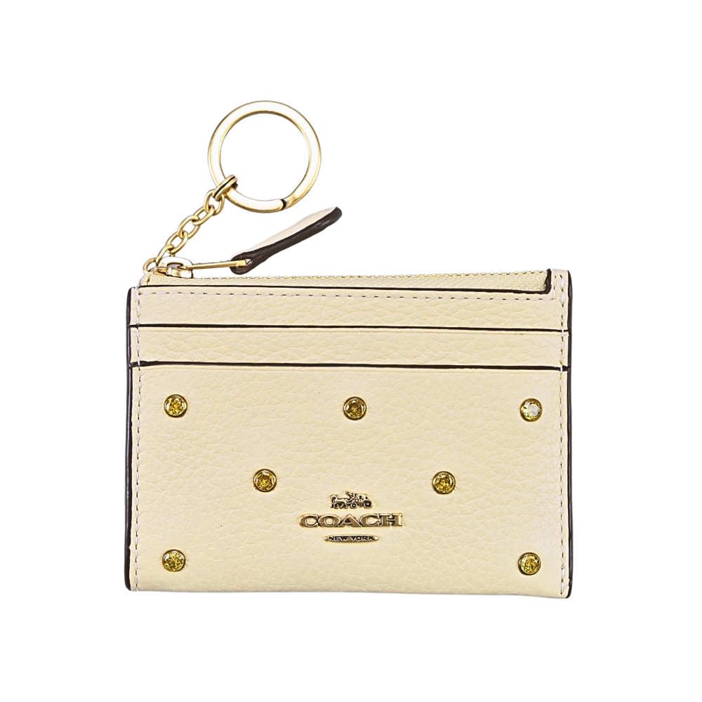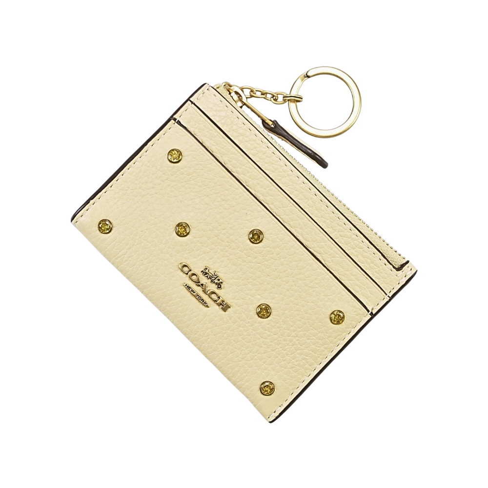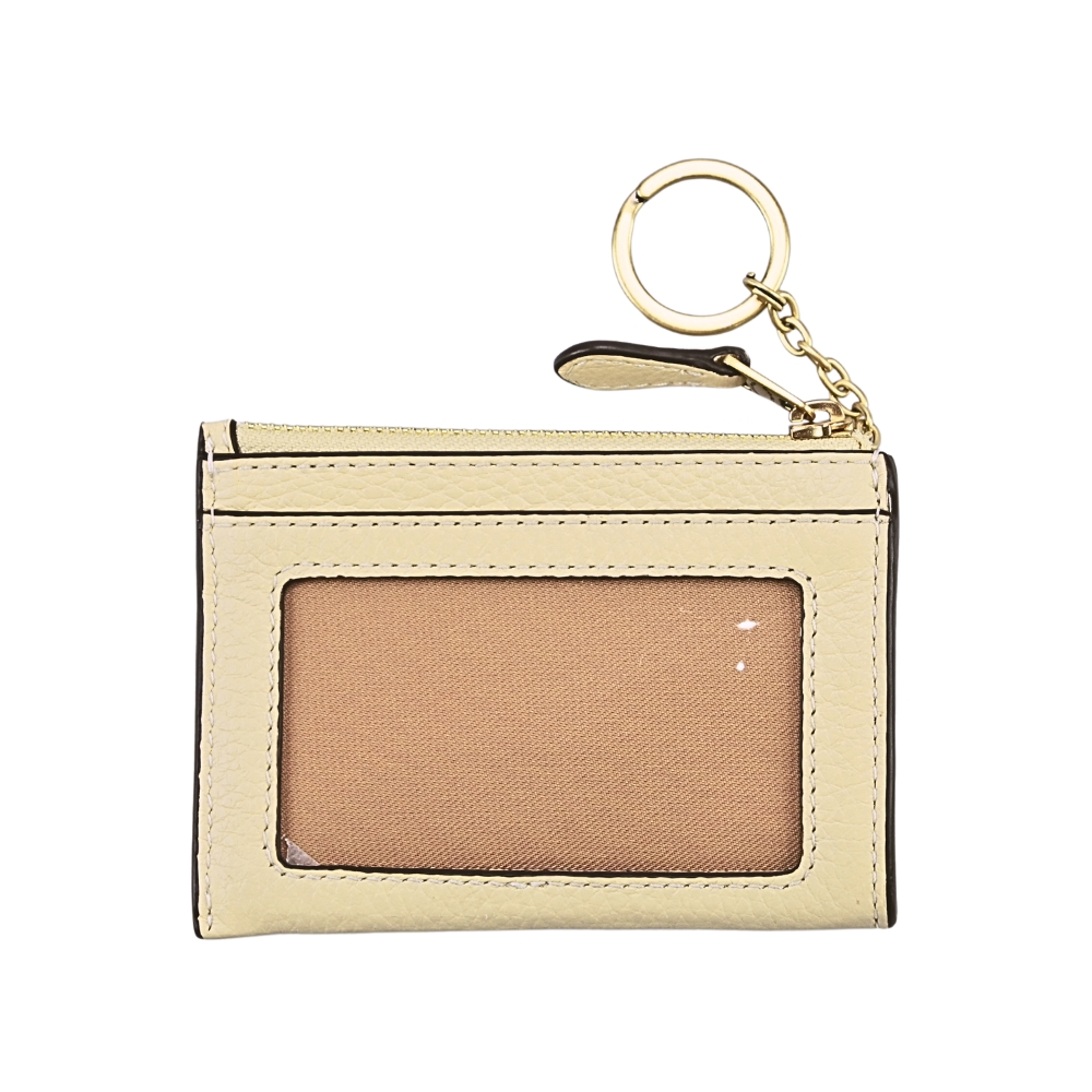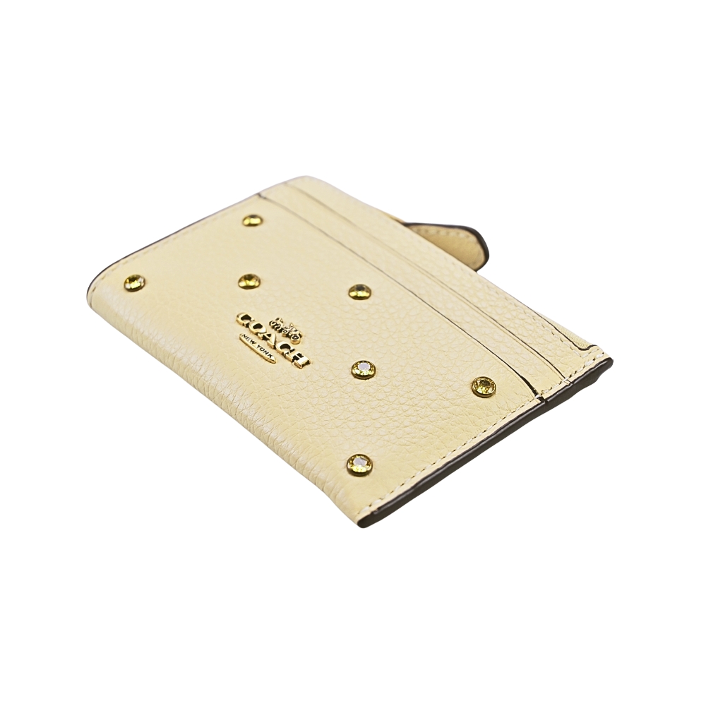 【COACH】月光水晶荔枝紋皮革前卡夾鑰匙零錢包(米黃色)