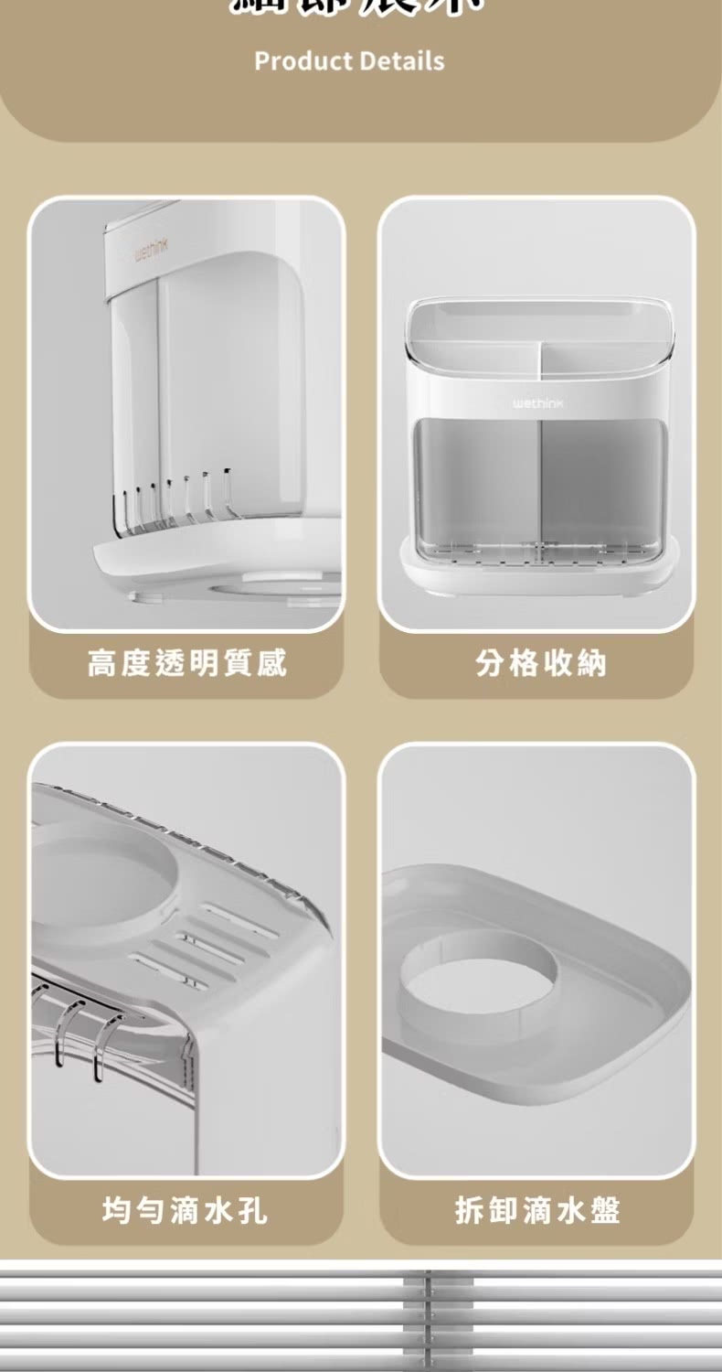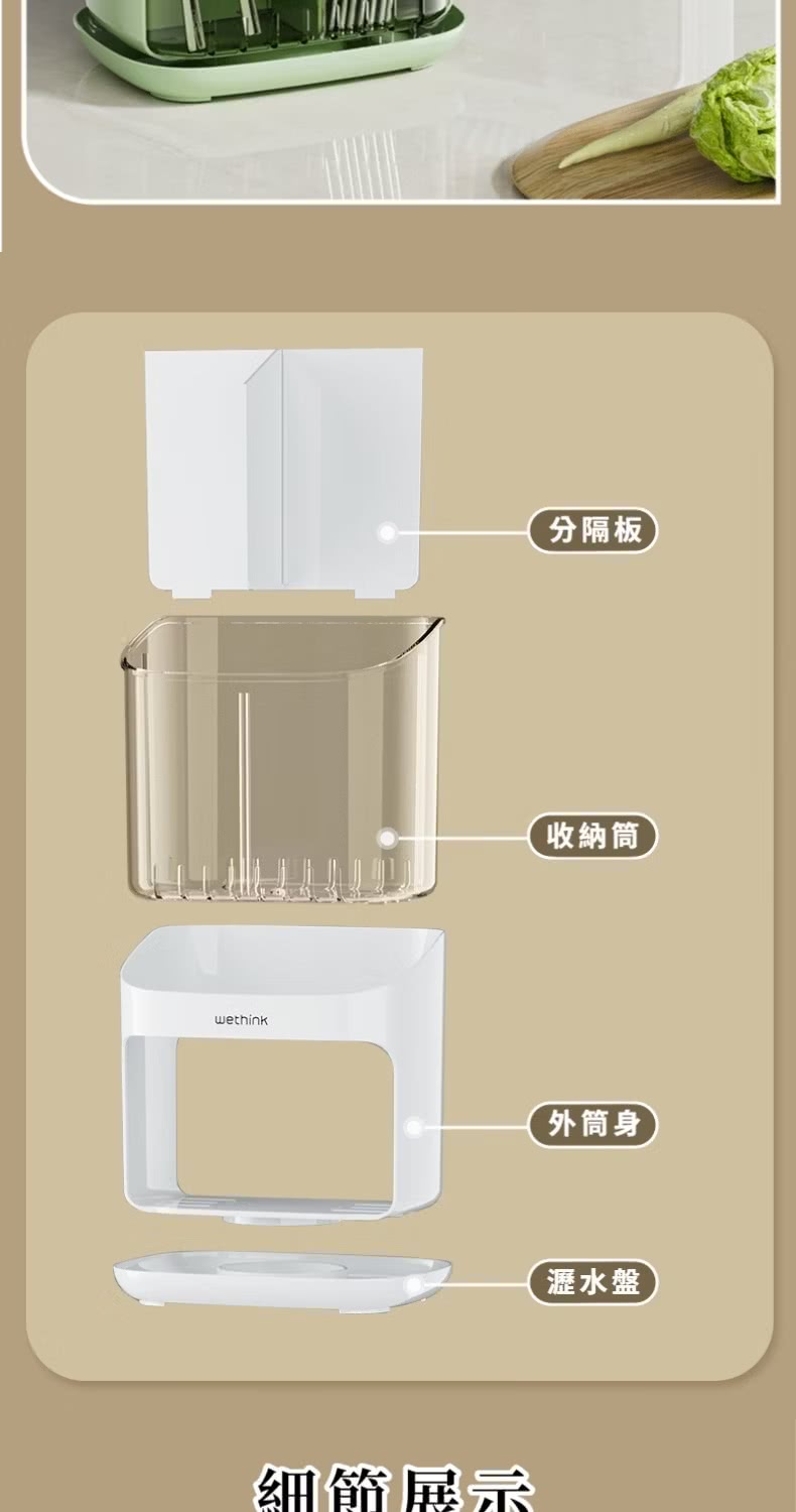 【一目了然】無印風質感立式分格瀝水筷子筒(分類分區 廚房收納架 筷籠 刀架 餐具架 瀝水架 置物架)