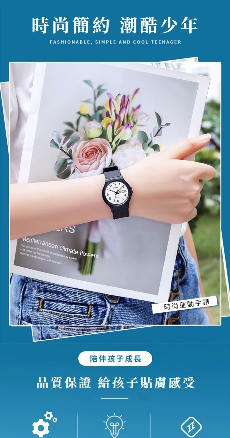 【青春家】日系簡約12小時制輕量手錶(星期顯示 日期 兒童 指針式石英手錶 小學生 禮物 大考試必備)