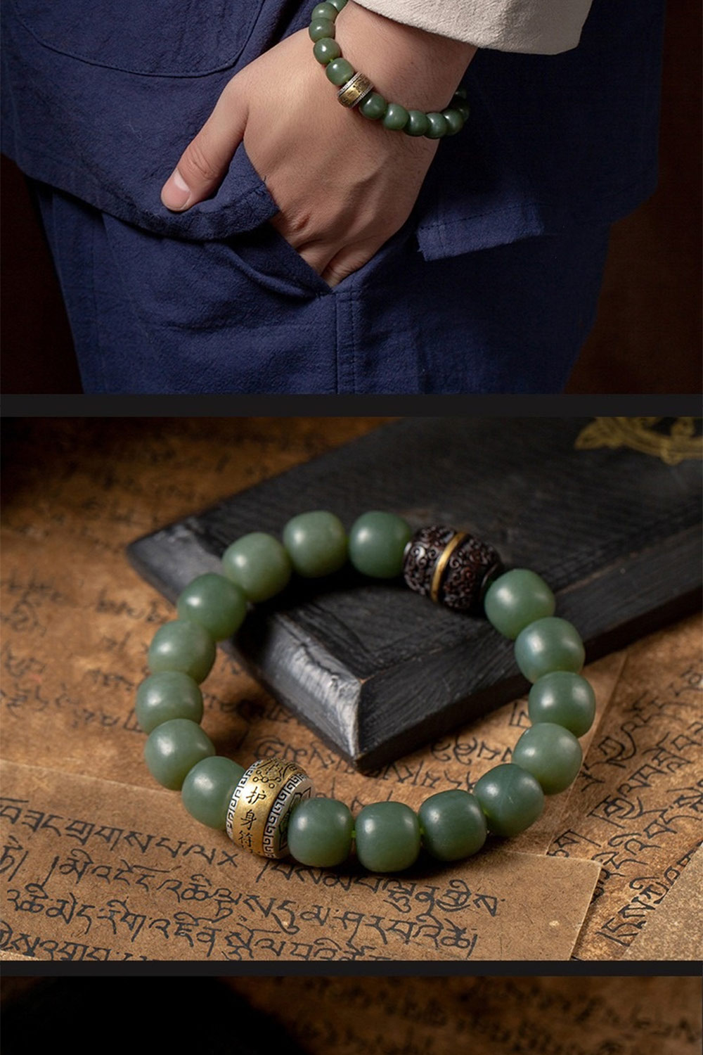 ✨ 材質:和田玉(且末藍)、天然黑檀、s925銀(12層電鍍工藝,不易氧化、不易過敏和掉色)、銅