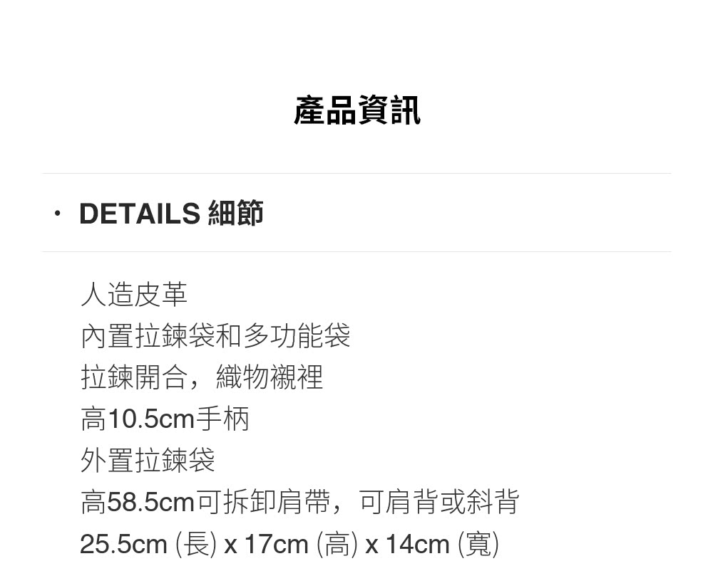 可拆卸肩帶,可肩背或斜背