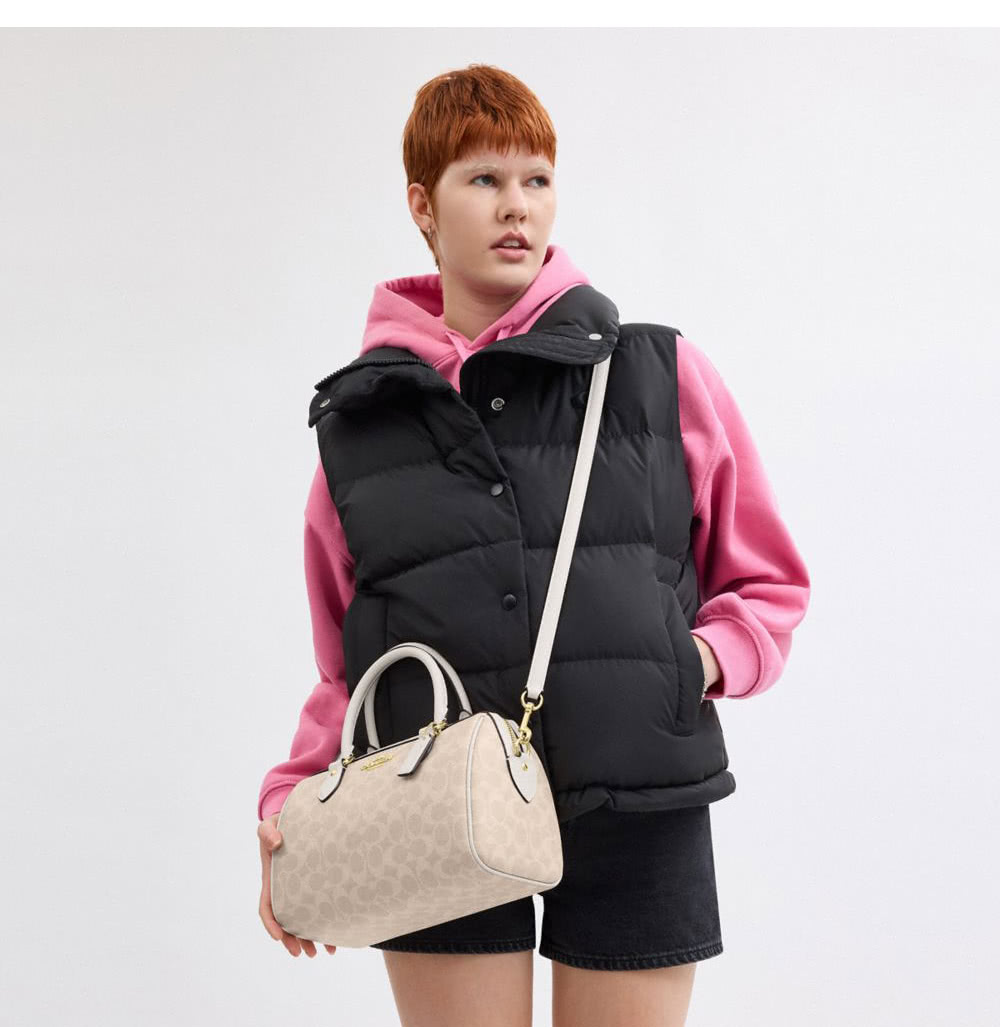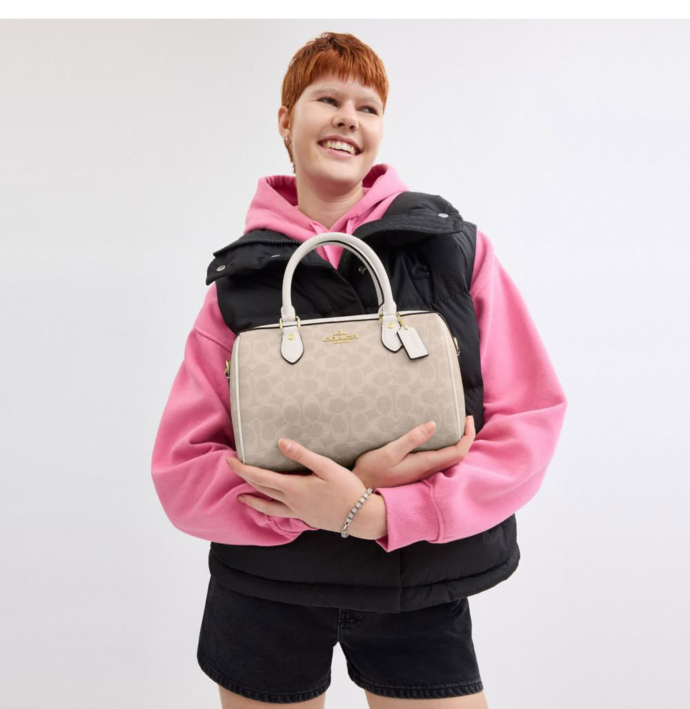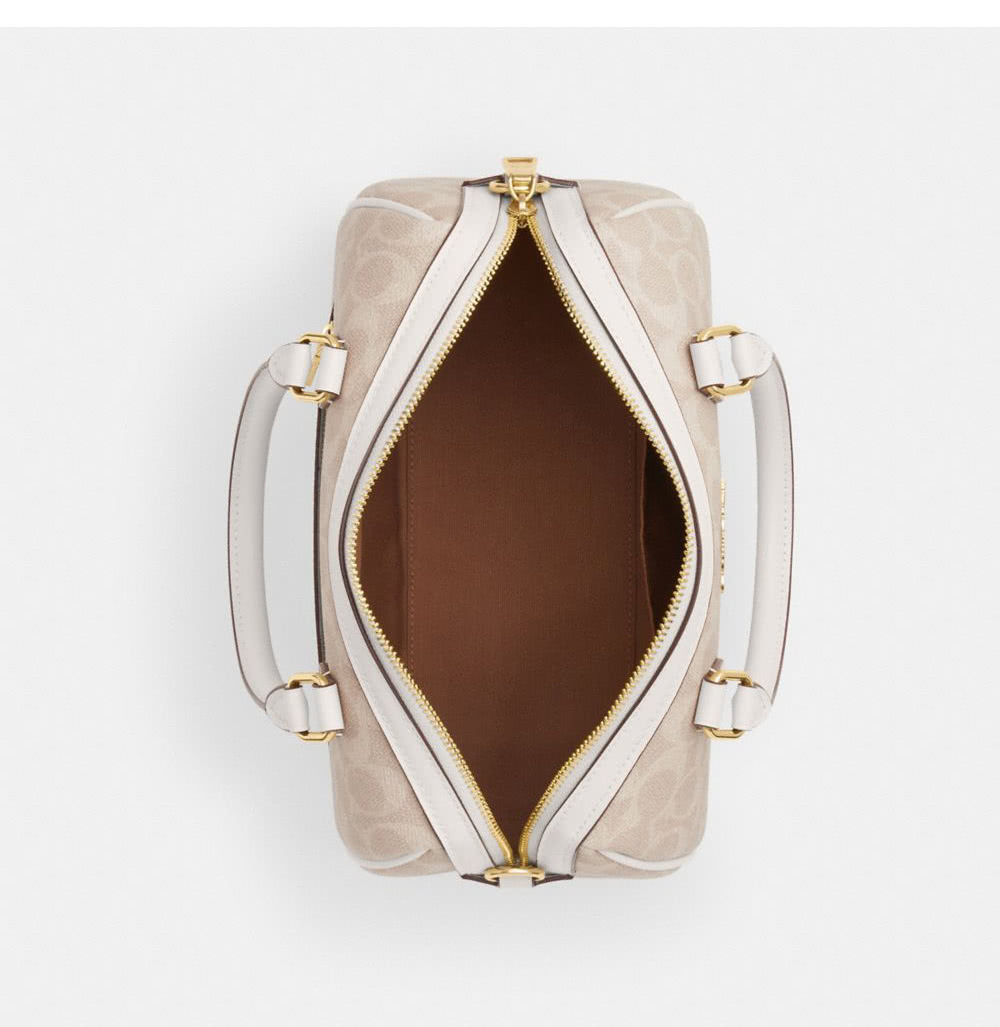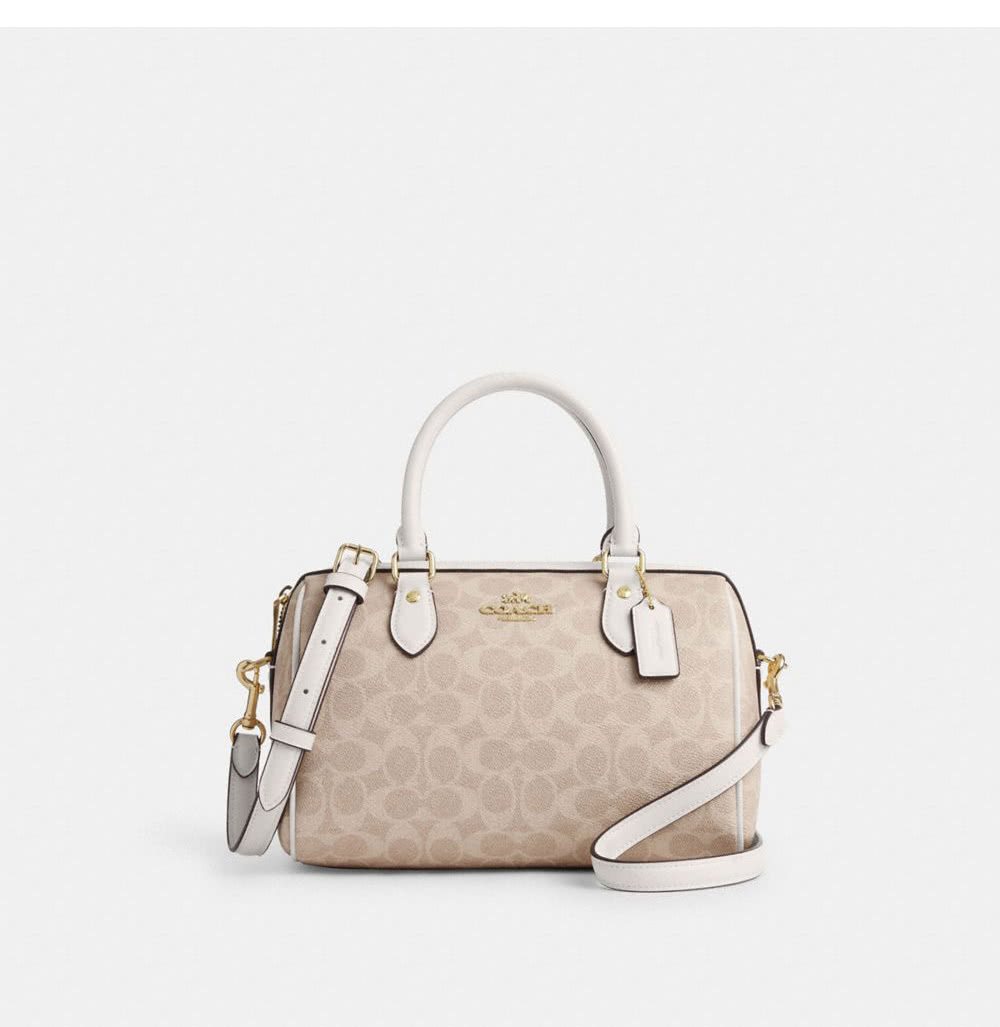 【COACH】蔻馳官方直營 ROWAN經典Logo手袋 斜背包 側背包 斜挎包 手提包-IM/沙黃色/粉筆白色(CV961)