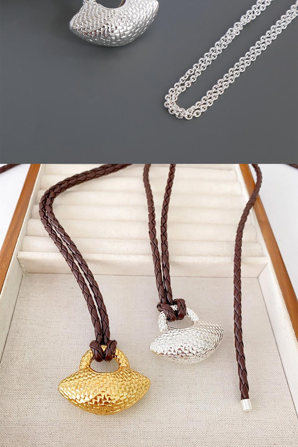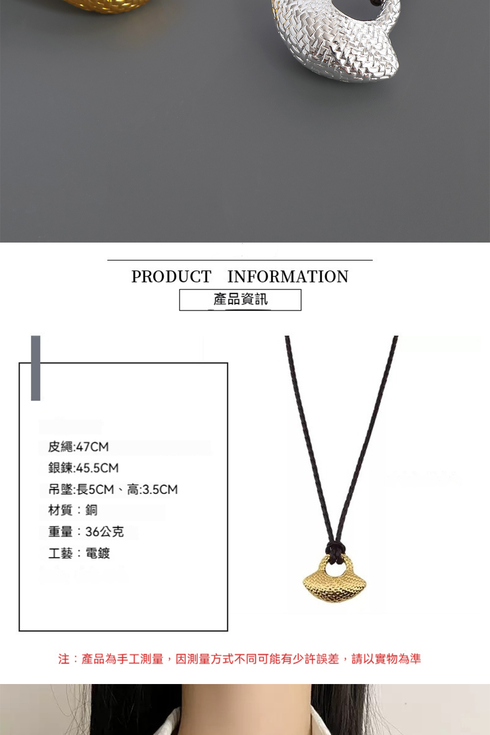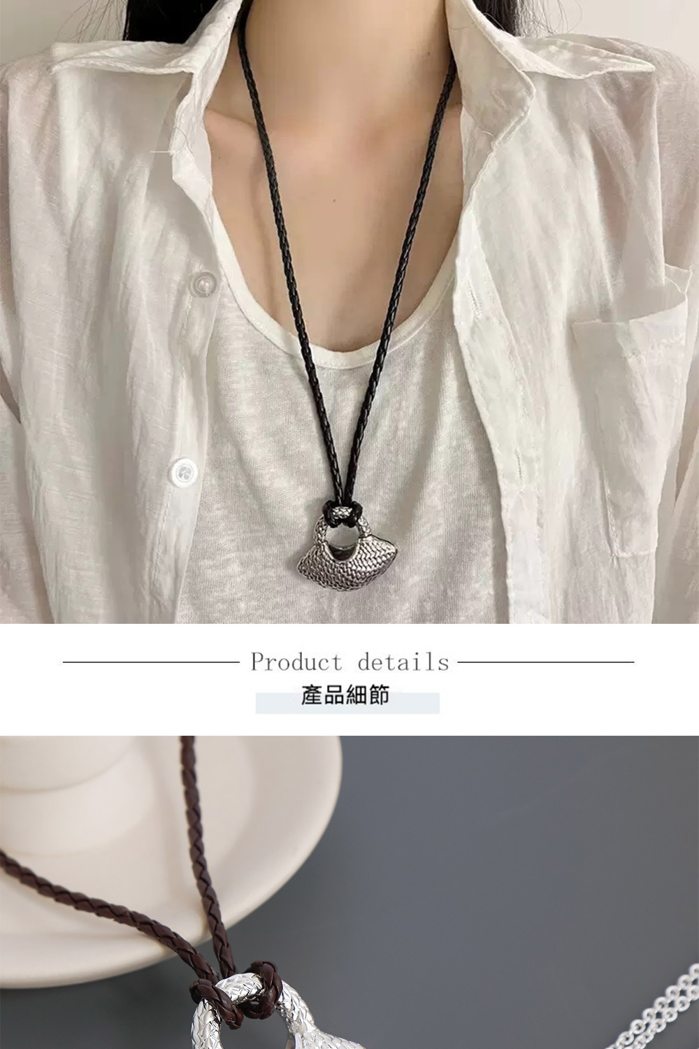 ✨ 商品尺吋:皮繩:47CM 銀鍊:45.5CM 吊墜:長5CM、高:3.5CM