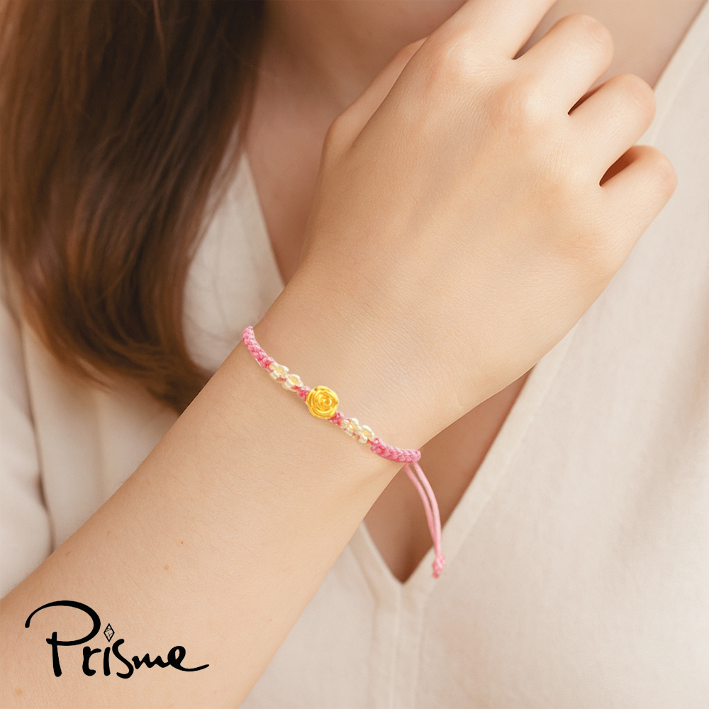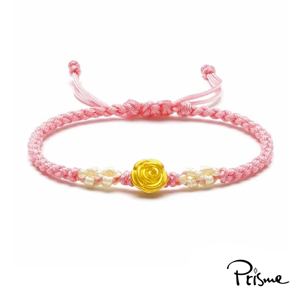 【Prisme】黃金手鍊 玫瑰花 粉色編織手鍊(金重:約0.03錢±0.01)