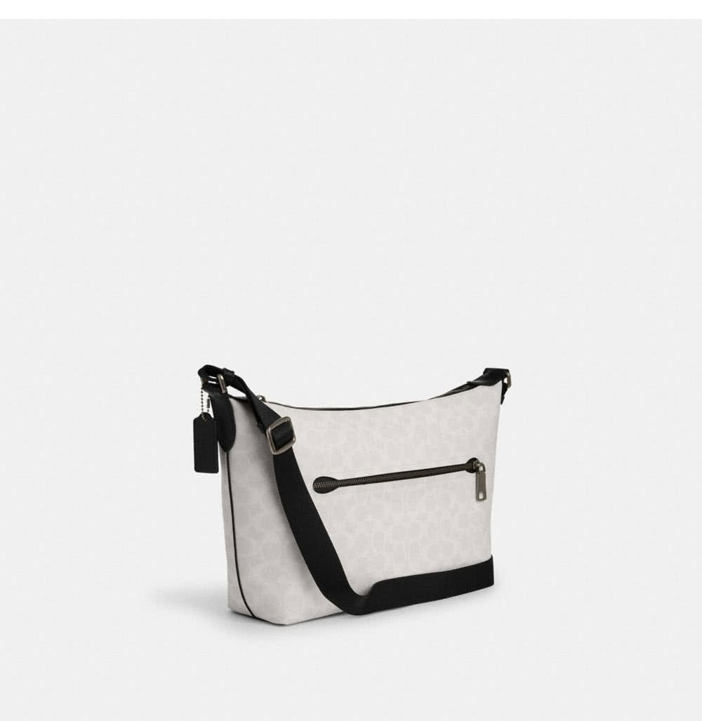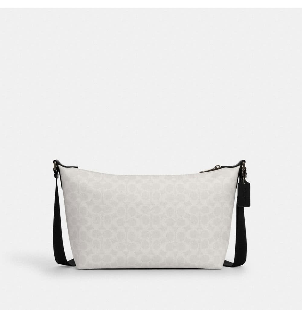 【COACH】蔻馳官方直營 FINN經典Logo斜背手袋 斜背包 側背包 斜挎包-青銅色硬體/粉筆白色/黑色(CAJ91)