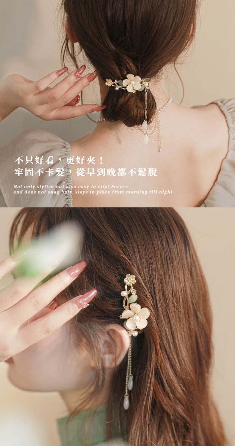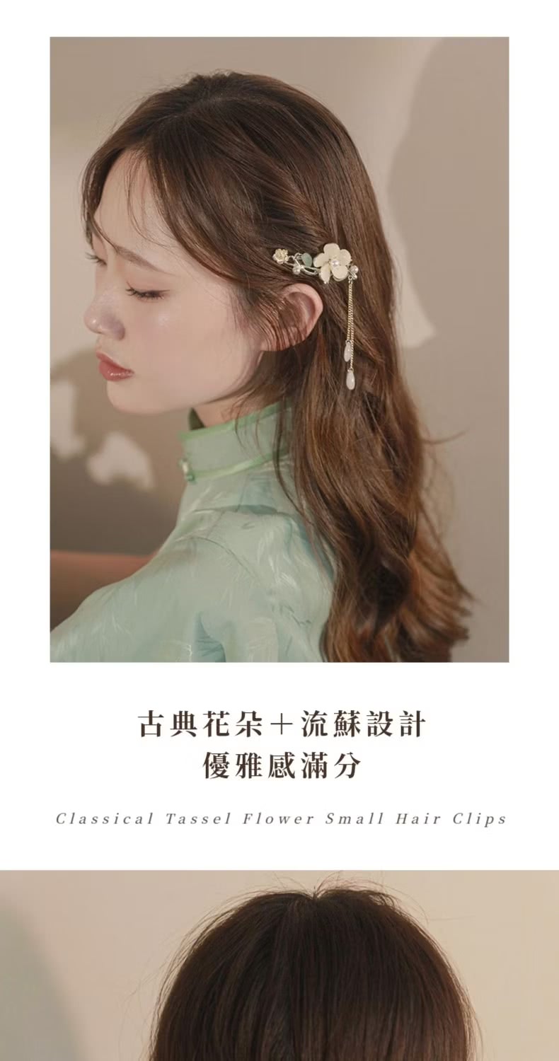 【仙氣爆棚】古典流蘇花朵小抓夾2入(側邊夾 瀏海夾 一字夾 髮夾 髮飾 頭飾 鯊魚夾 七夕 情人節 禮物)