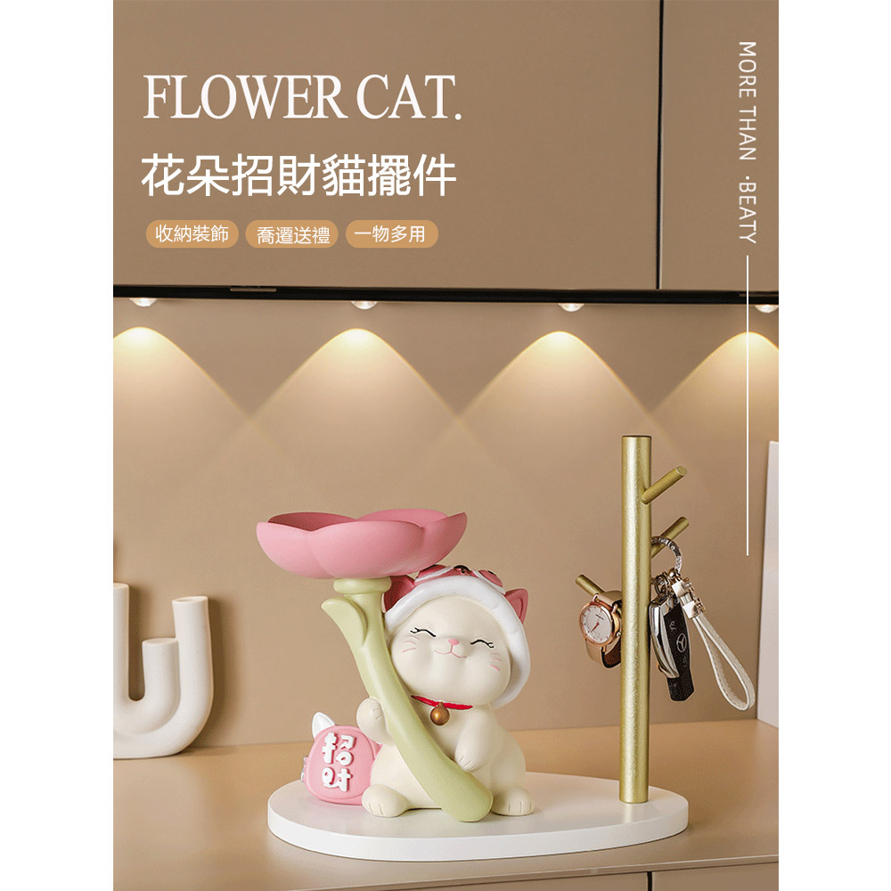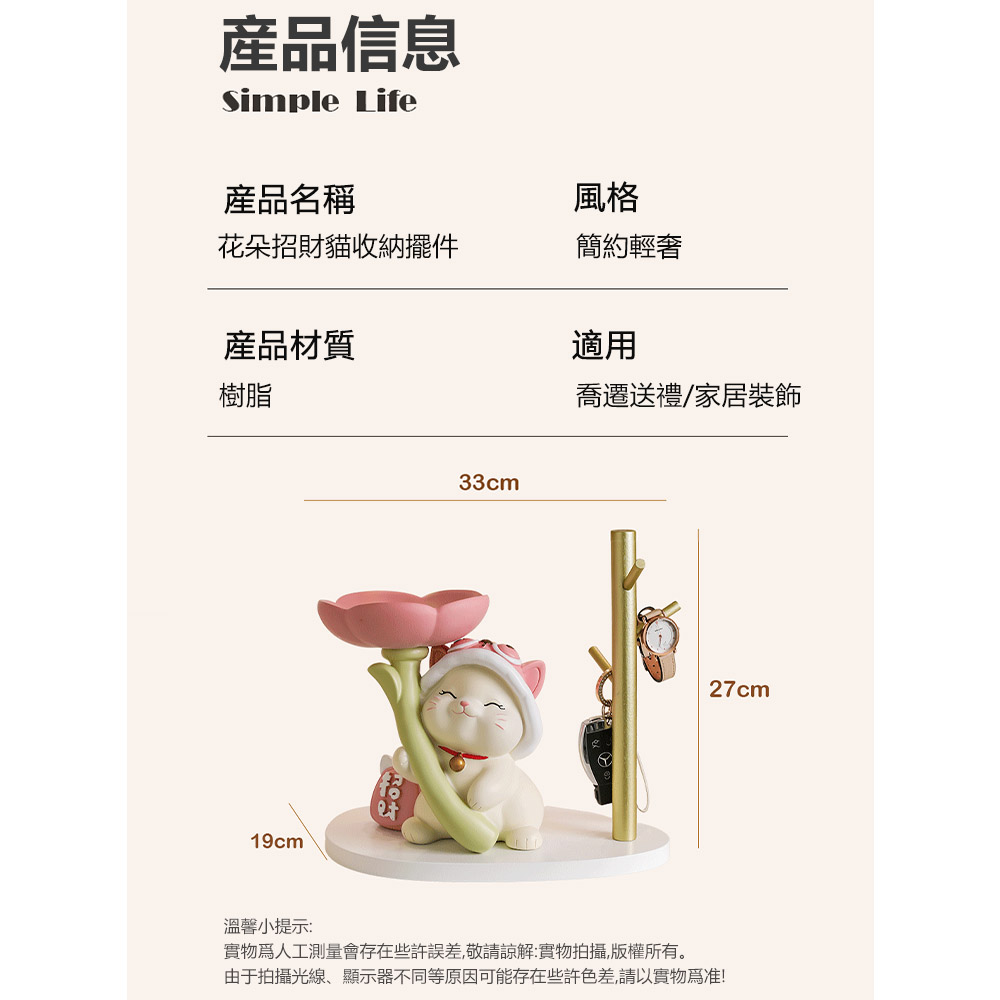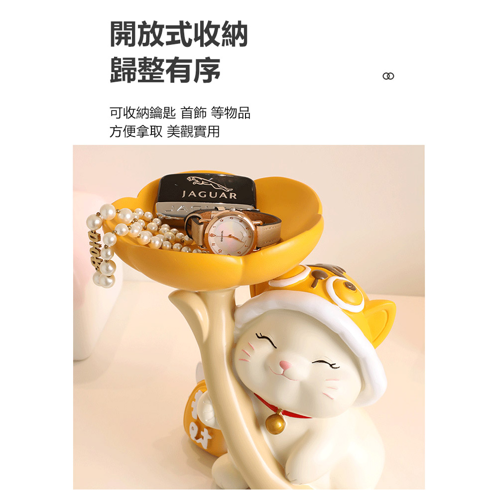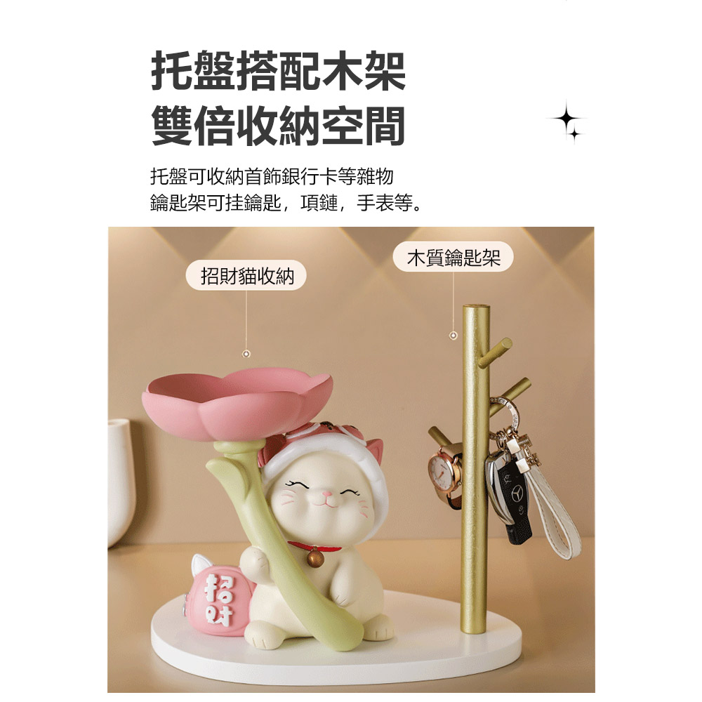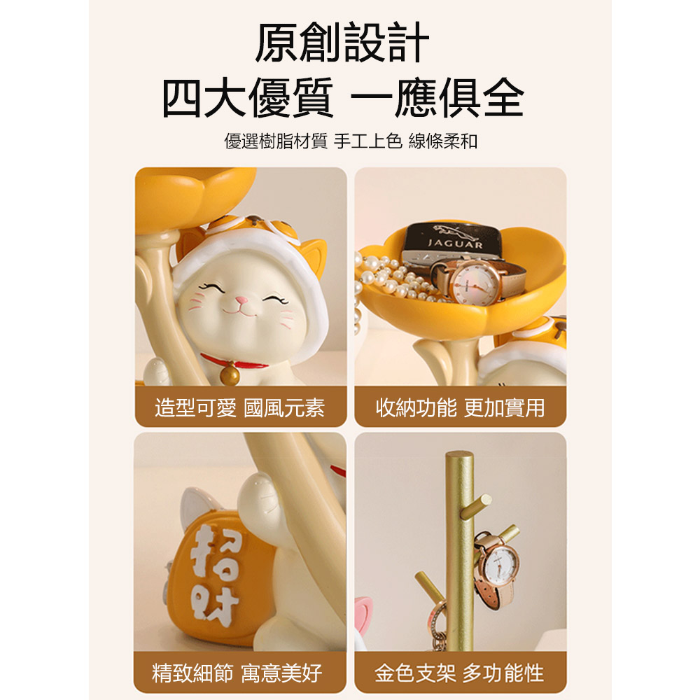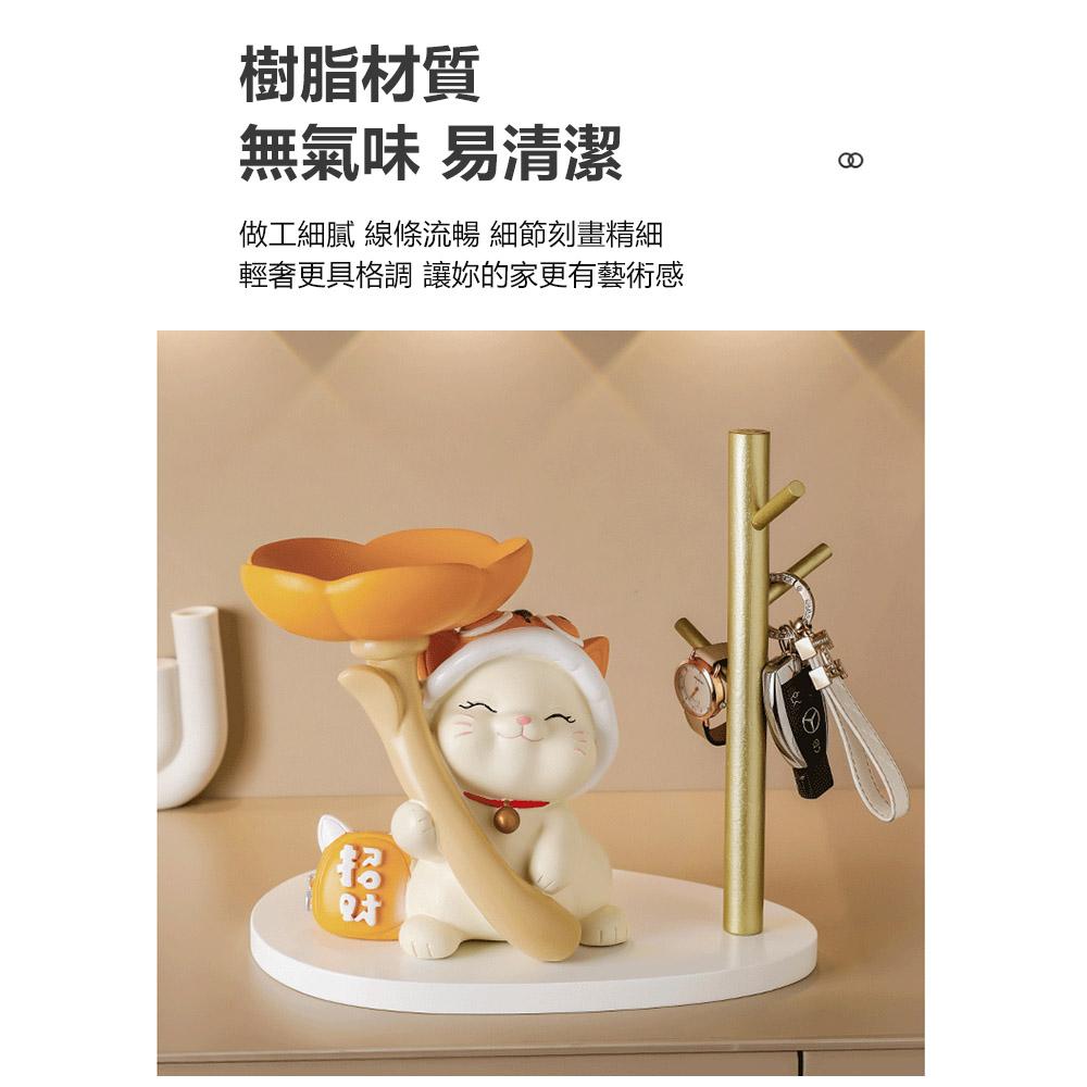 【LEZUN 樂尊】奶油風招財貓桌上可置物擺件 入戶玄關擺件(家居裝飾/喬遷禮品/鑰匙收納/桌面擺飾)
