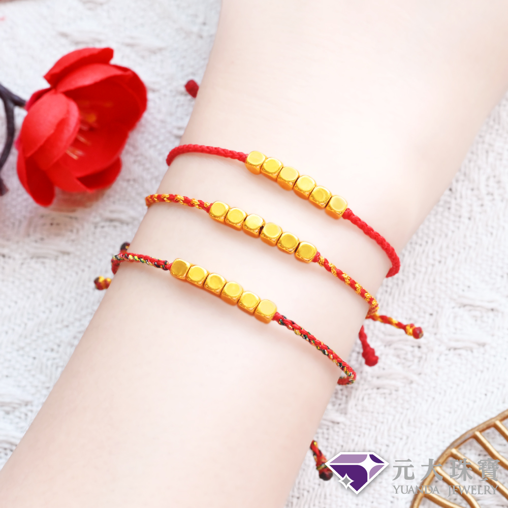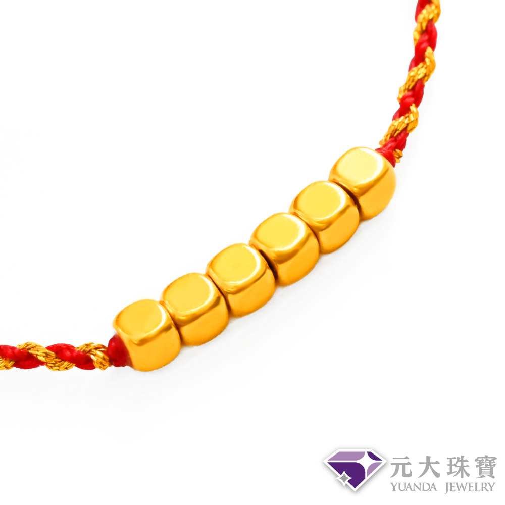 【元大珠寶】雙11黃金手鍊甜蜜方糖 編織手鍊蠟繩 拉繩設計(0.06錢正負1厘)