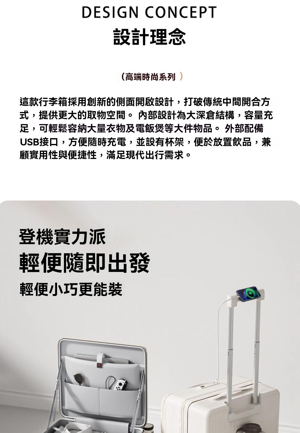 【良品空間】行李箱 登機箱 拉桿箱 旅行箱子 2025新款行李箱(20寸 升級側開 靜音輪 USB充電)