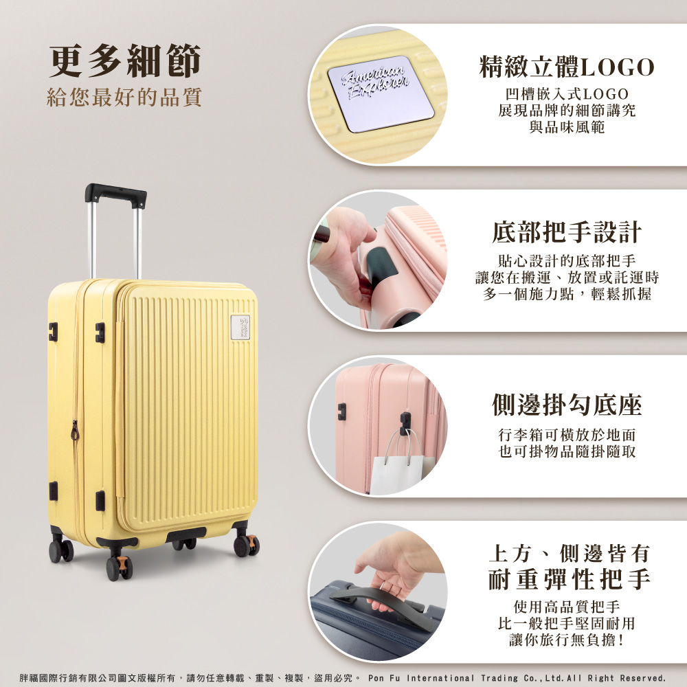● 輕量化、大容量款式,經典時尚直條紋,搭配極細緻珠光霧面設計,質感滿分又防刮!