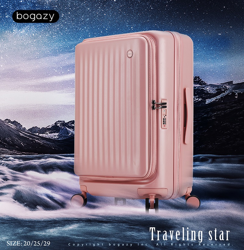 【Bogazy】璀璨星辰 29吋前開式商務箱/充電孔/防爆拉鍊/可加大/海關鎖行李箱(亮橘色)