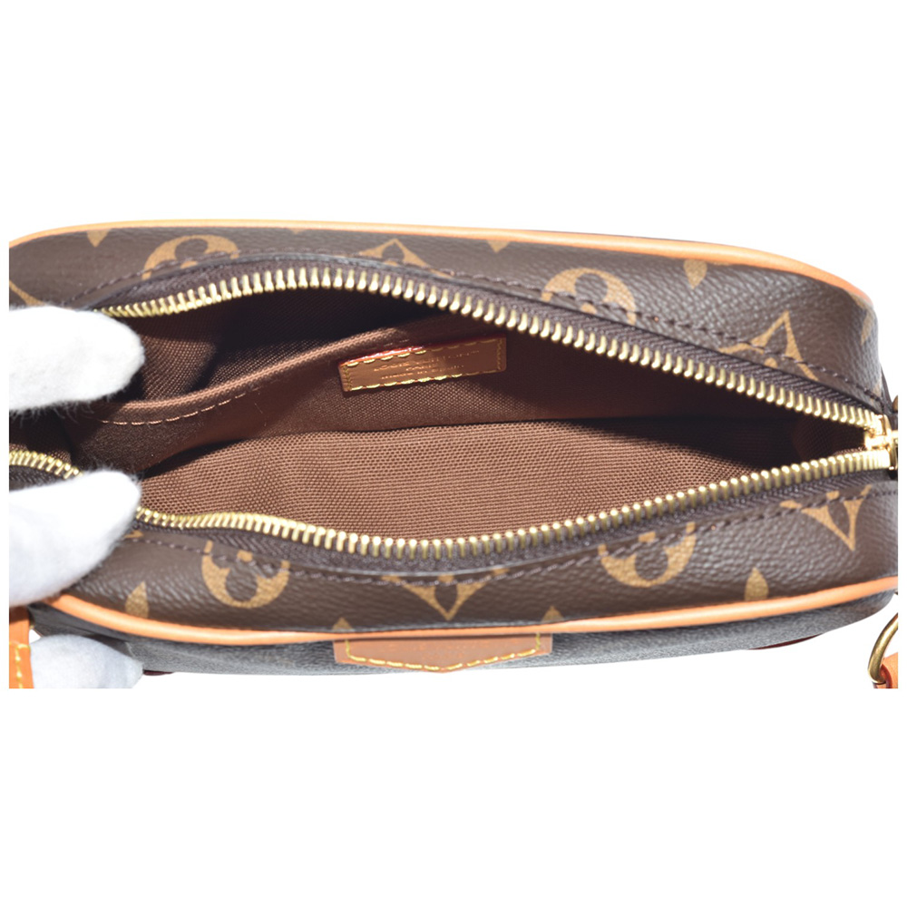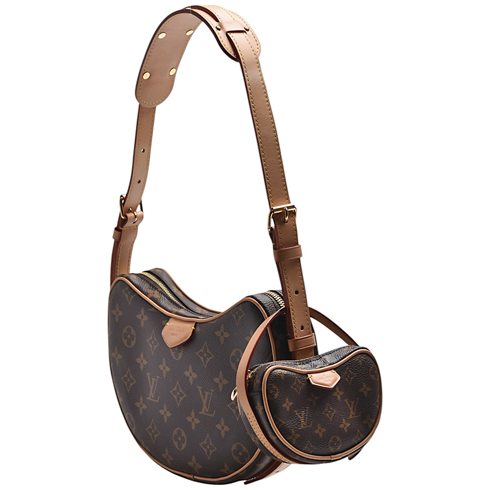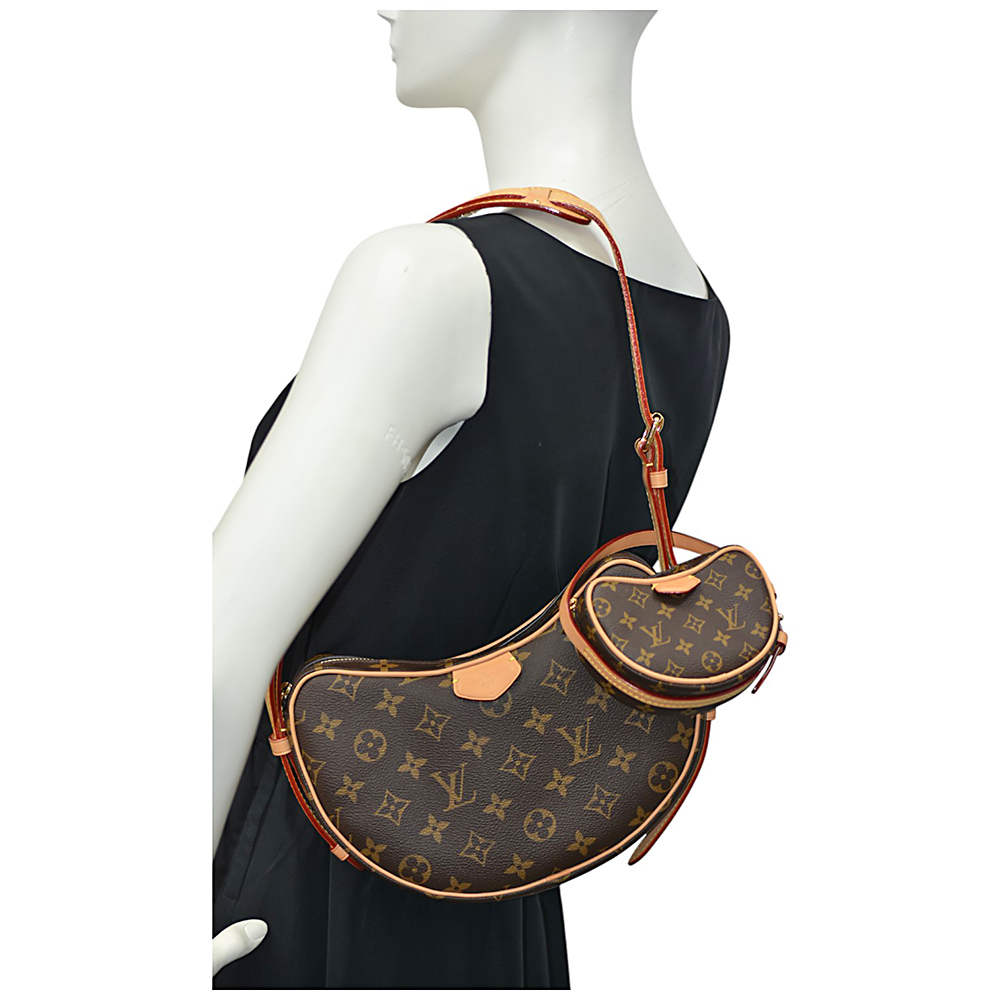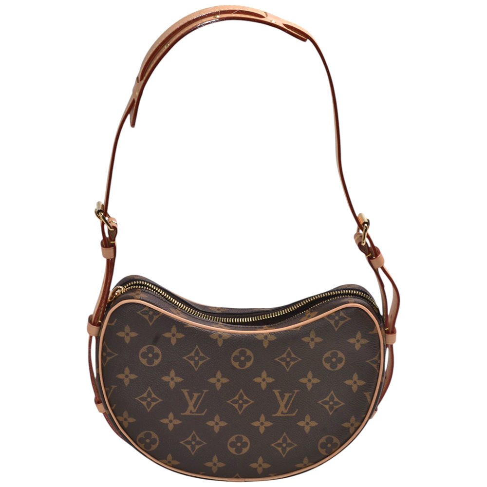 【Louis Vuitton 路易威登】M46828 Croissant MM系列Monogram帆布牛皮飾邊附迷你手袋肩背包(棕色)