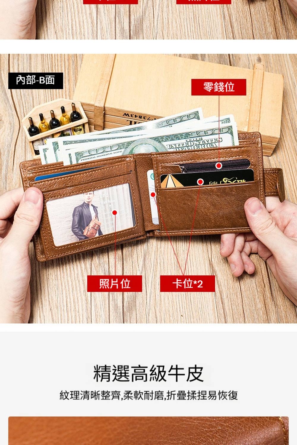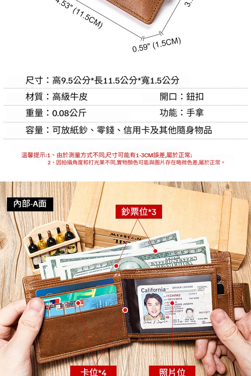 👜結構:鈔票位*3、卡位*6、照片位*2、零錢位*1