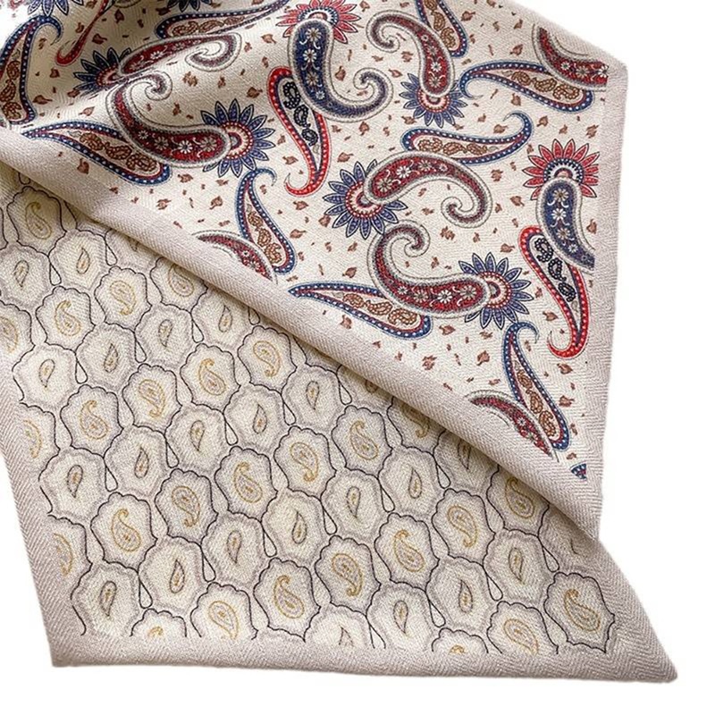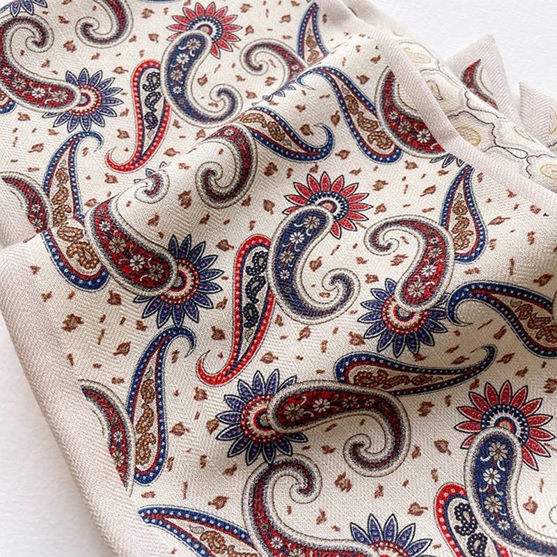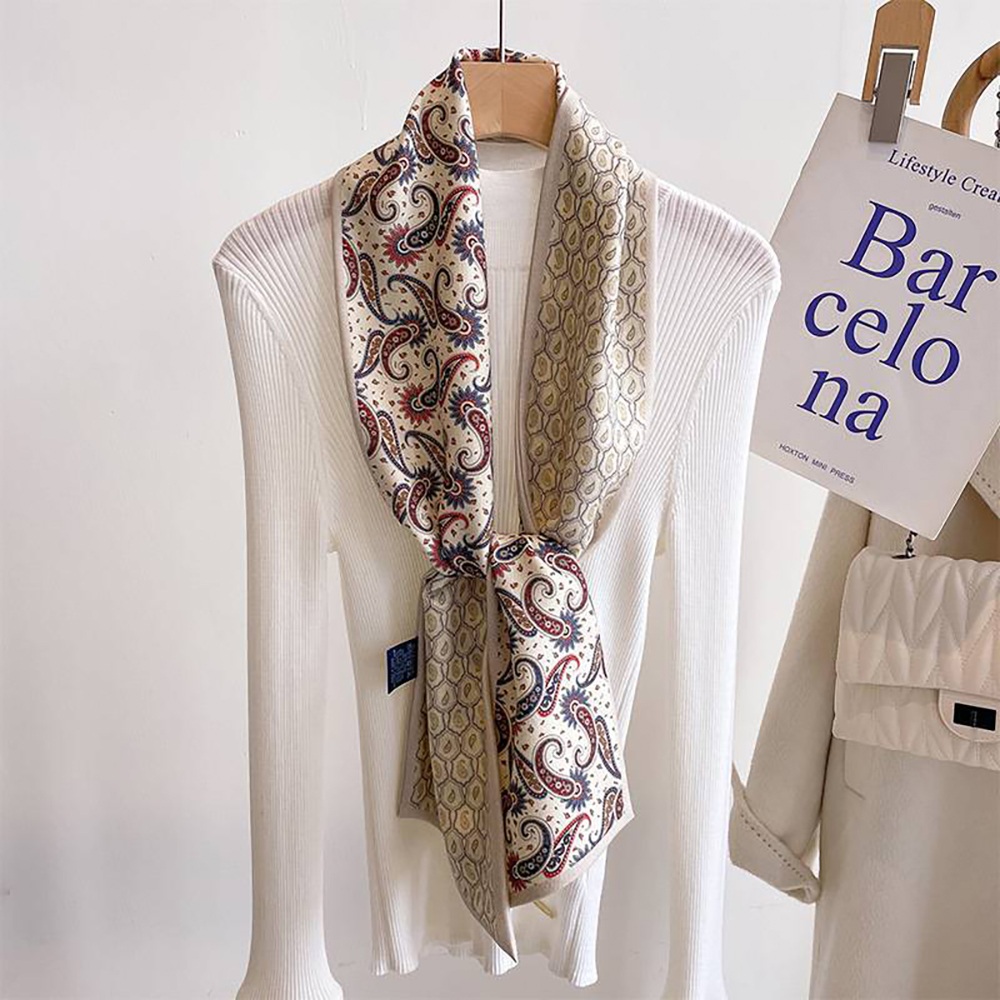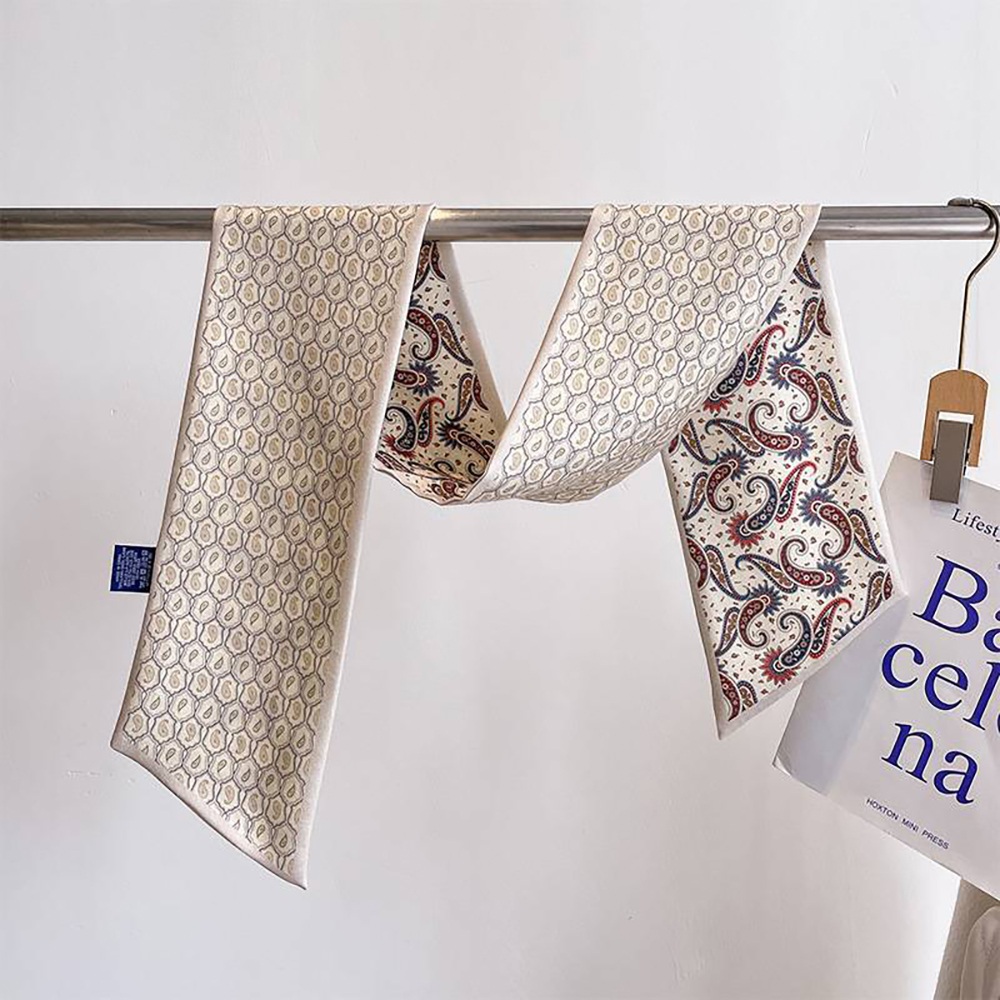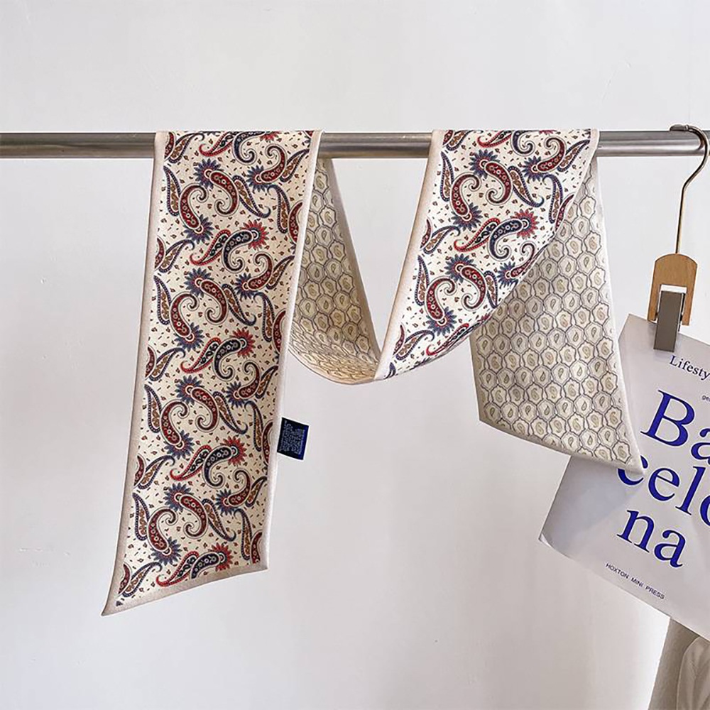 【VEDINA】復古優雅雙面設計100%真絲+羊毛長條圍巾(絲巾綢緞圍脖/緞面領巾/頭巾披肩領結)