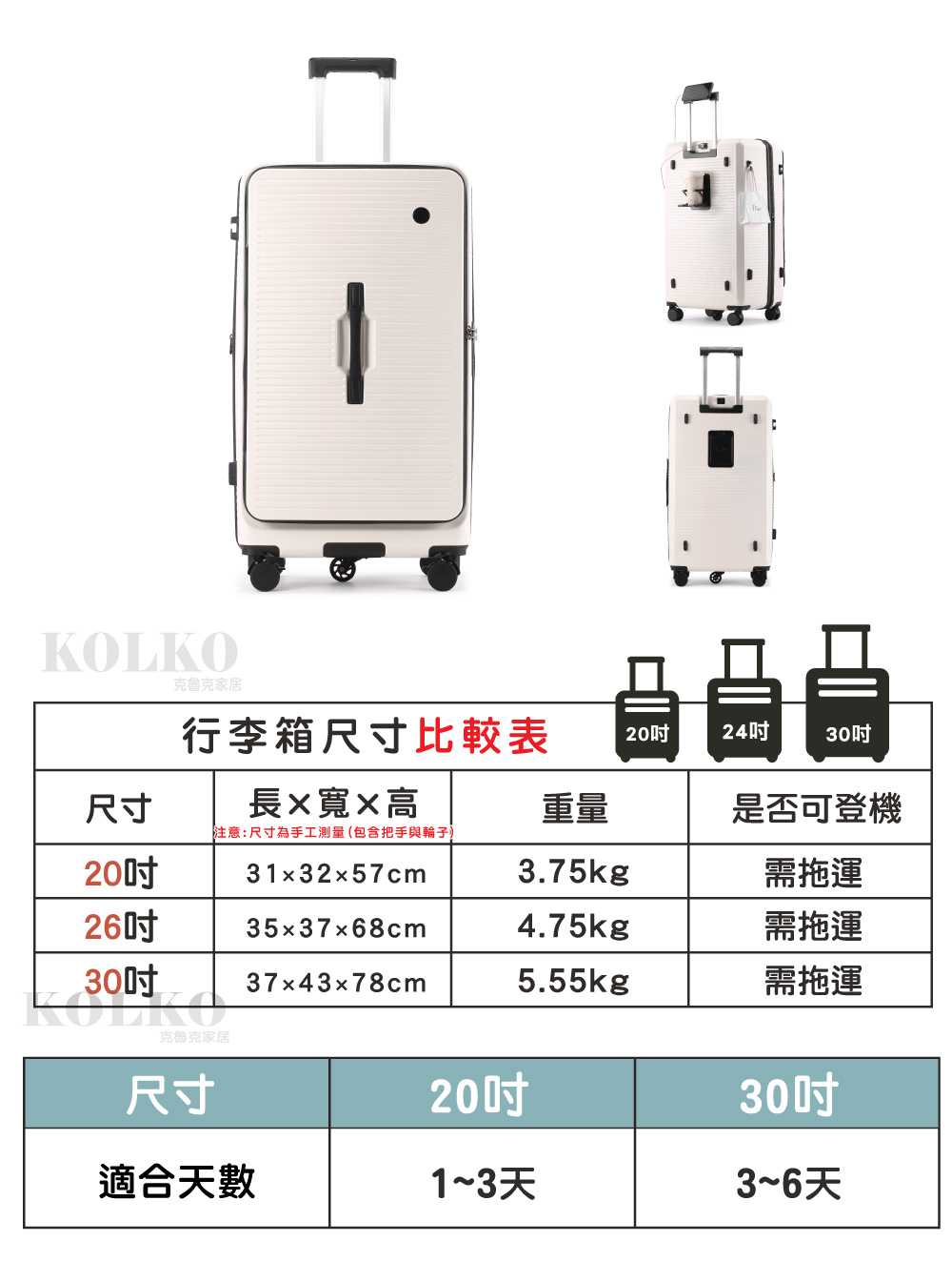 【Clook 鹿客家居】26吋璀途前開式行李箱(大容量行李箱 託運箱 旅行箱 拉桿箱 密碼鎖行李箱)