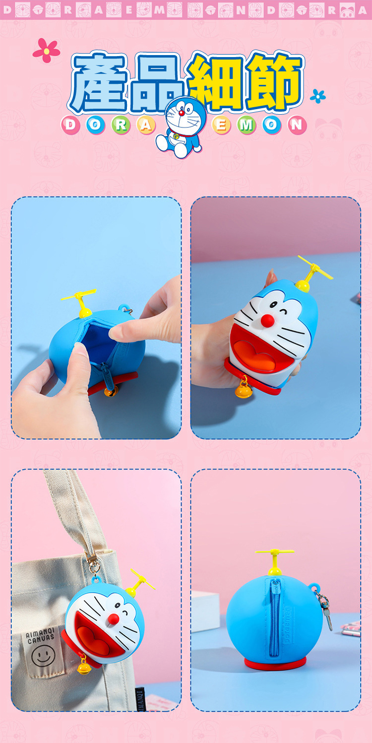 【Doraemon 哆啦A夢】正版授權竹蜻蜓矽膠材質隨身掛飾零錢包收納包(平輸品)