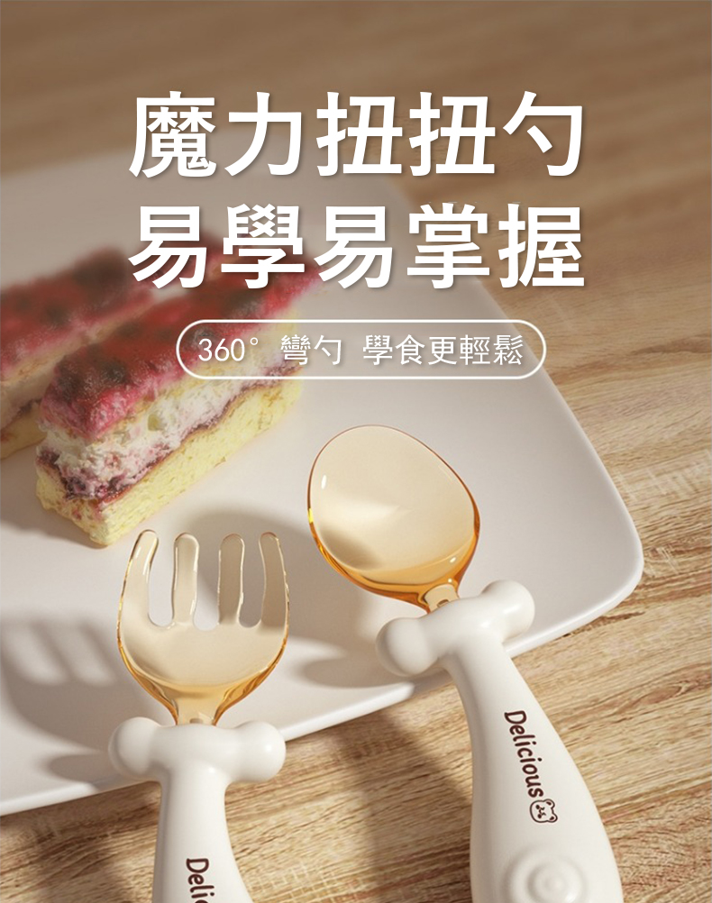 【Jonyer】扭扭勺兒童餐具套組 360°彎曲勺子 輔食湯匙 寶寶吃飯訓練 自主進食 兒童學習餐具