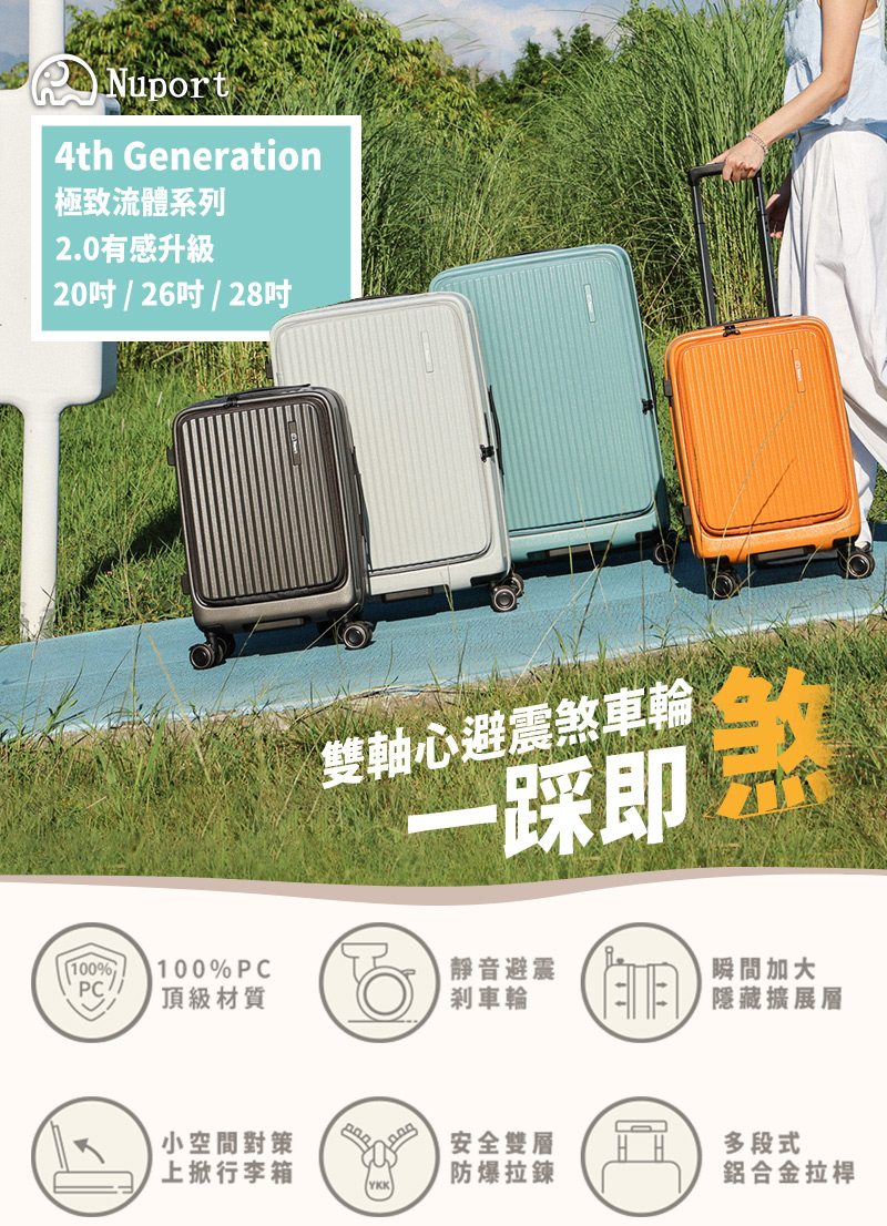 【Nuport 妮柏兒】20吋第四代極致流體系列前開式旅行箱/登機箱/行李箱(5色可選)