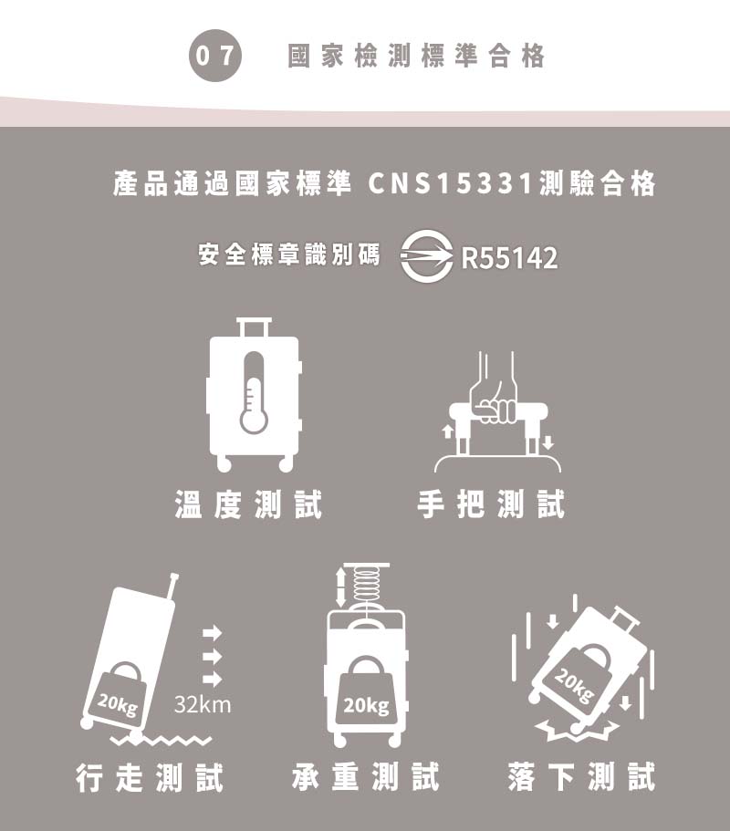 ● SGS國家核可實驗室,拉桿、行走、落下、裝載測試合格