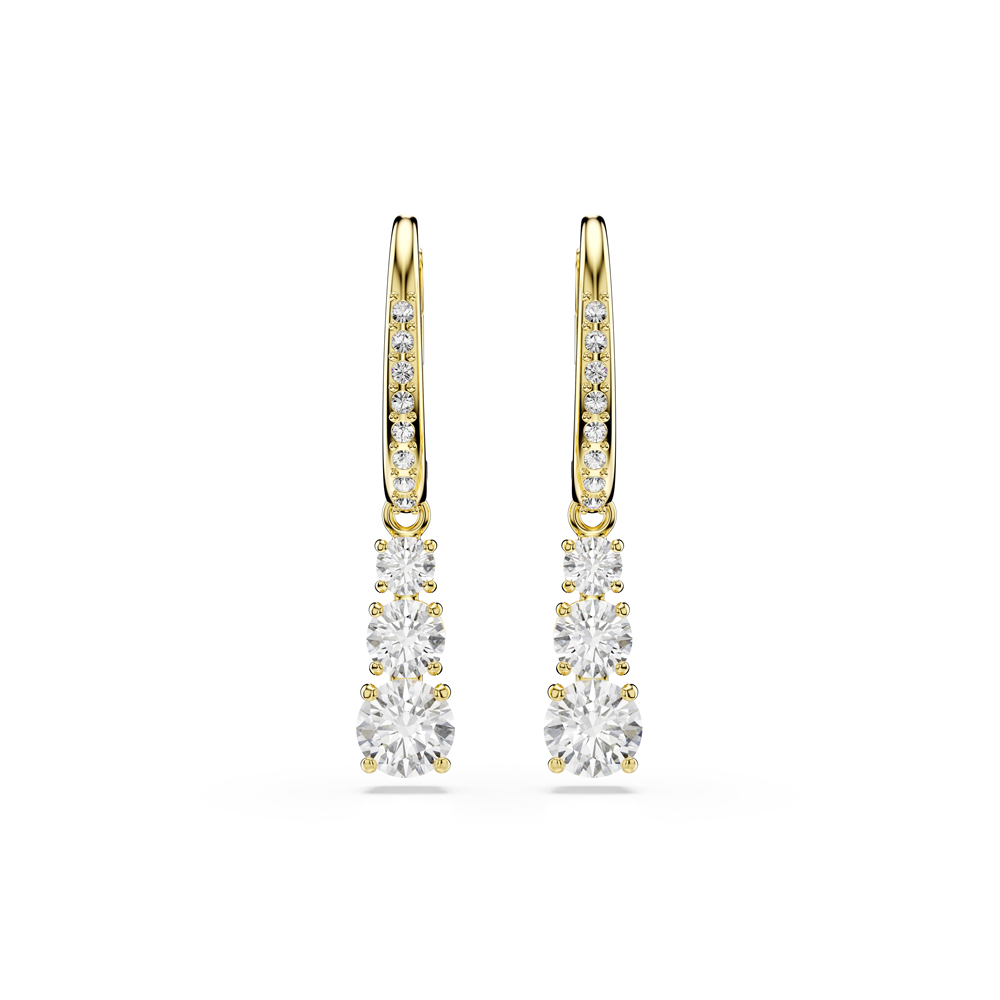 這款令人讚嘆的穿式耳環秉持浪漫的永恆理念精心打造。每只耳環都以金色調鑲座為主體,鑲有三顆透明 Swarovski 鋯石,大圈上更綴以閃爍生輝的密鑲裝飾。永恆優雅的設計,將成為珍貴的紀念品。搭配成套項鏈或戒指,可發揮極致效果。