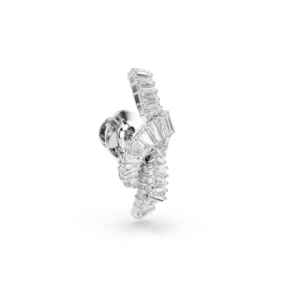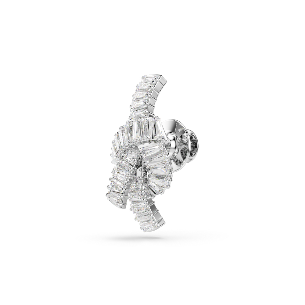 以這款迷人的徽章為任何裝扮點綴一抹光彩。鍍銠圖案的靈感來自緞帶,並以法國麵包形切割 Swarovski 鋯石打造出綁結裝飾。單獨佩戴就十分出眾,或者搭配同系列其他珠寶單品也十分美麗。