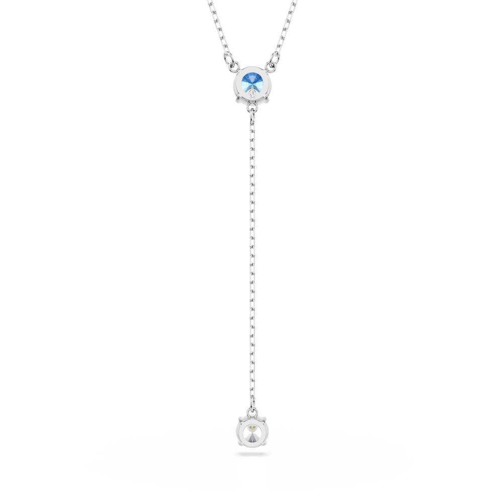 【SWAROVSKI 施華洛世奇】Stilla Attract Y形項鏈 圓形切割 藍色 鍍白金色(情人節禮物)