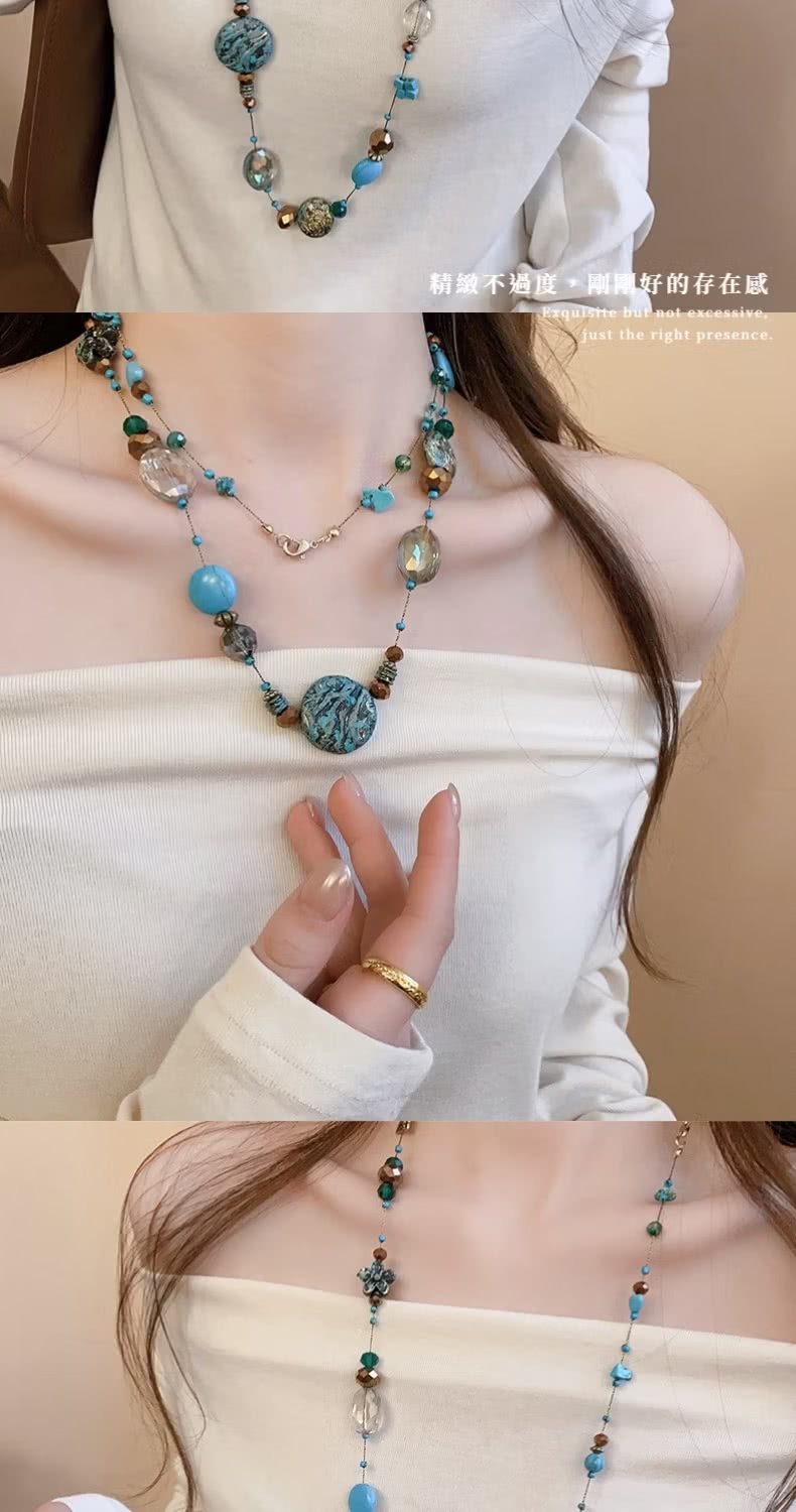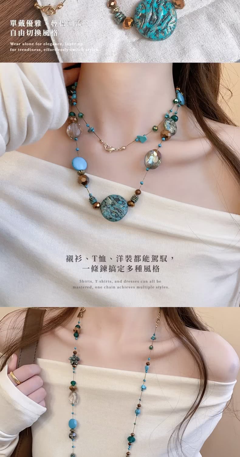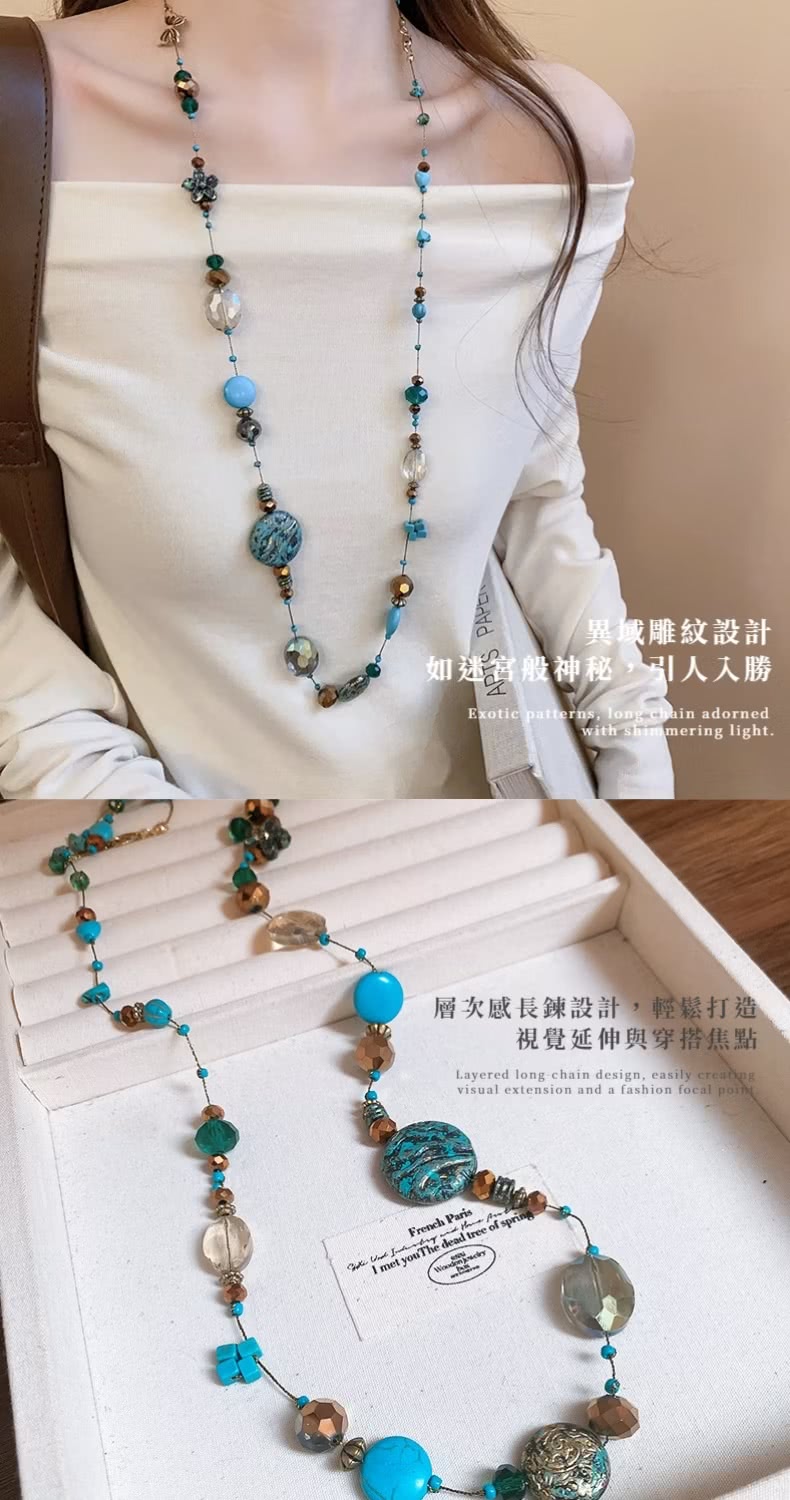 【復古異彩】異域雕紋琉光點綴長鍊(自由穿搭 波西米亞 手作 串珠 項鍊 異國風 文青飾品)