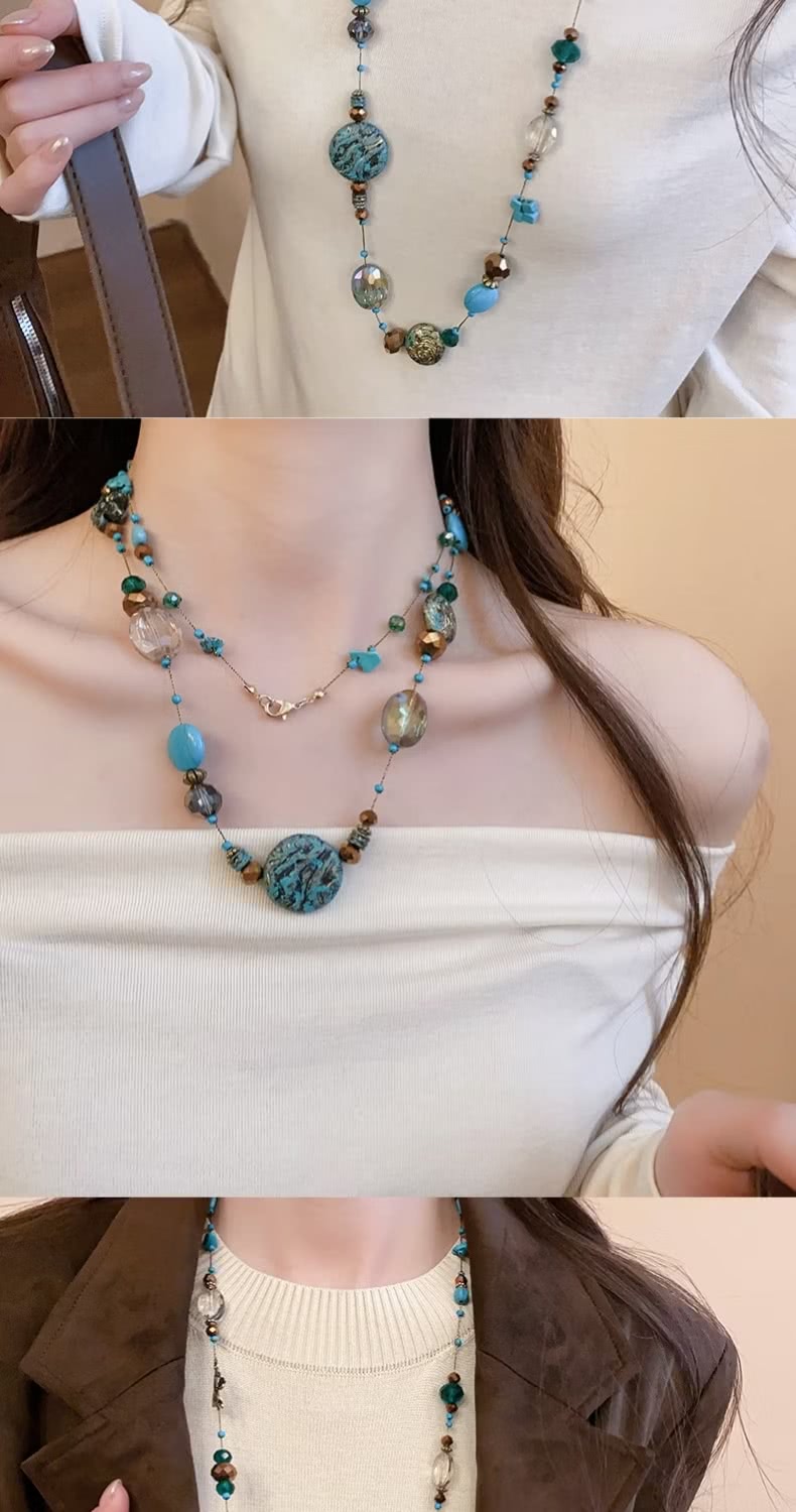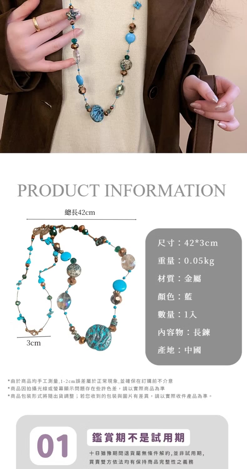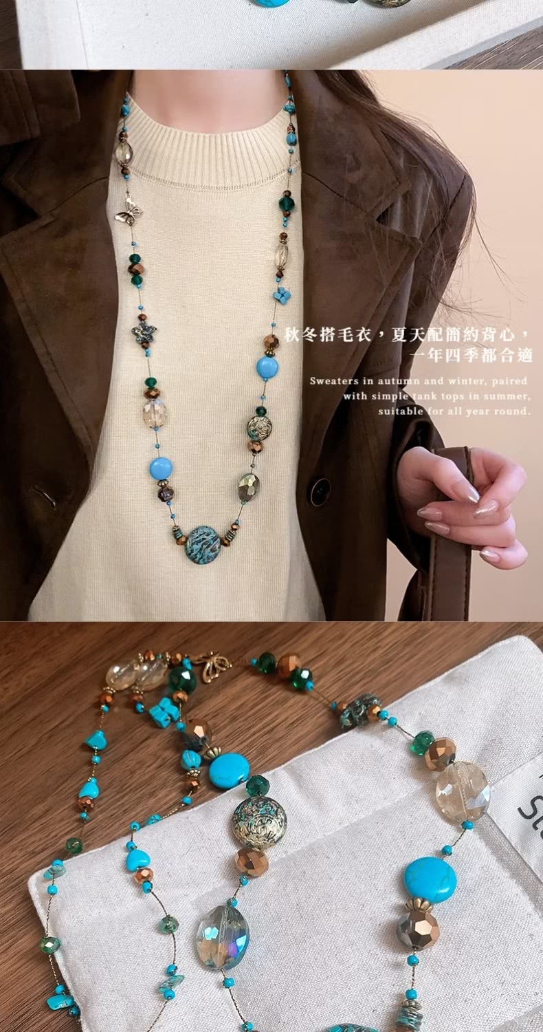 【復古異彩】異域雕紋琉光點綴長鍊(自由穿搭 波西米亞 手作 串珠 項鍊 異國風 文青飾品)