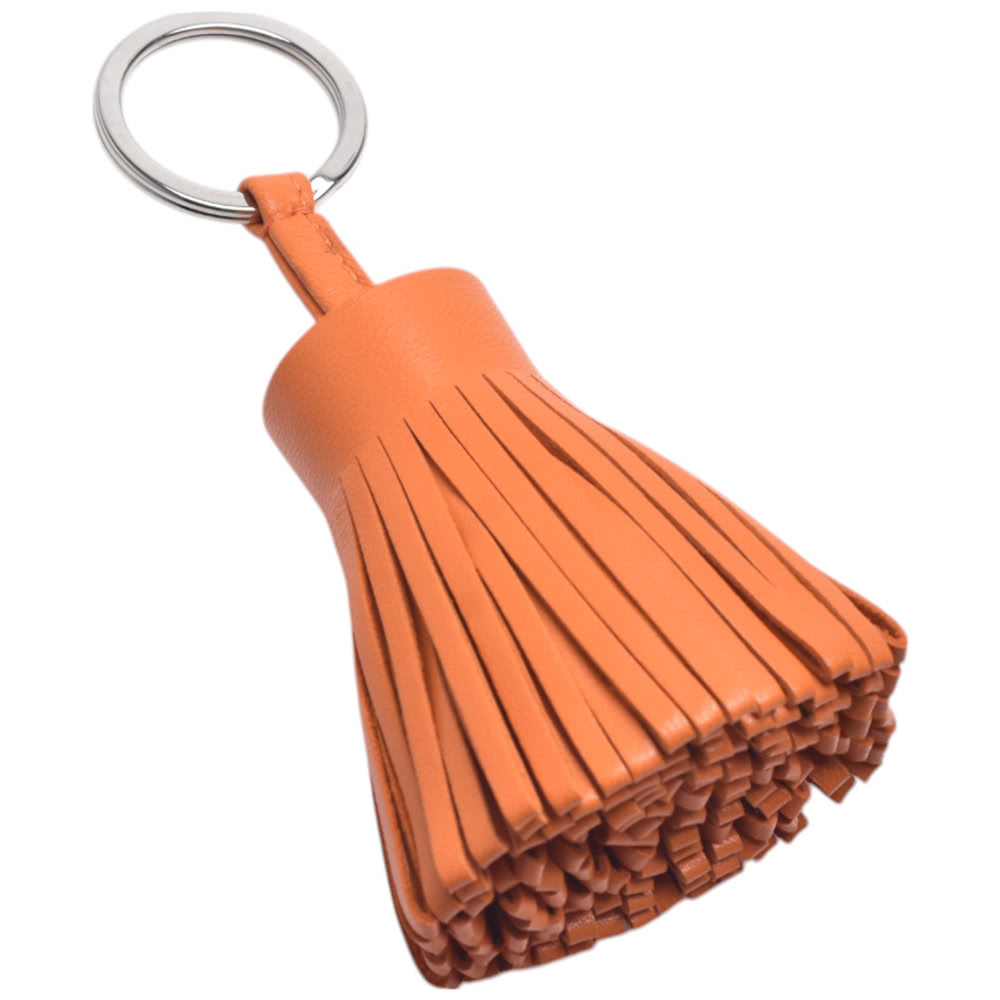 【Hermes 愛馬仕】流蘇造形山羊皮鑰匙圈手袋吊飾(橘色H327108-ORANGE)