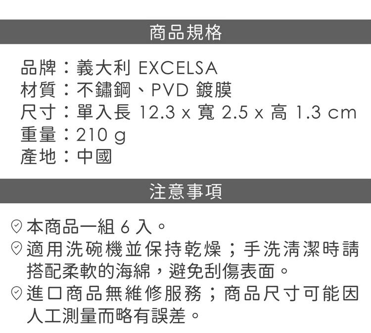 【EXCELSA】Gold不鏽鋼咖啡匙6入 金 / 點心匙 攪拌匙 茶匙 下午茶餐具